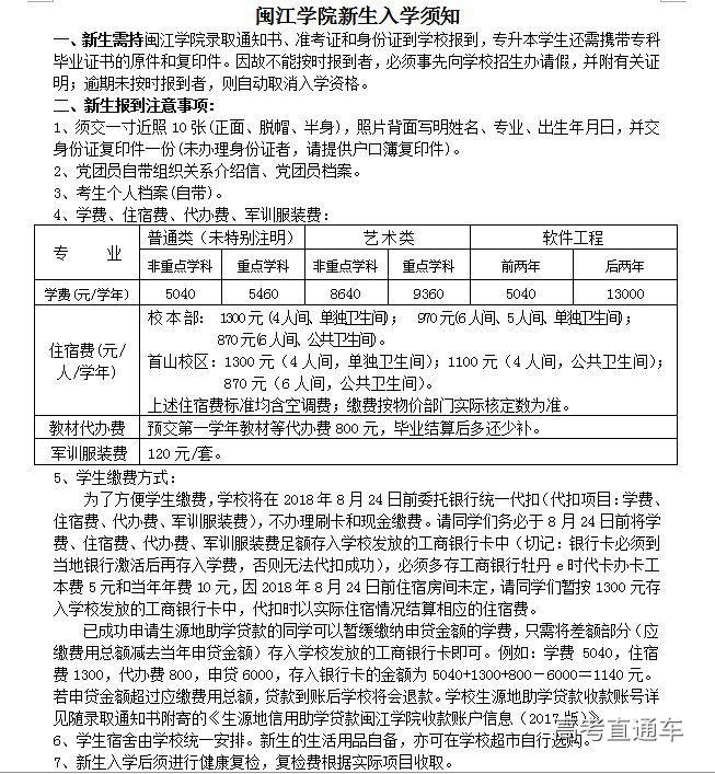 4、来校产生的交通、食宿、行李托运等费用以及在校期间的生活费用等均由学生本人自理。