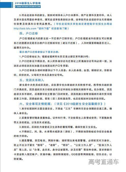 福建省新生不办理户口迁移手续,其他省份新生自行决定是否将户口转移到学校。