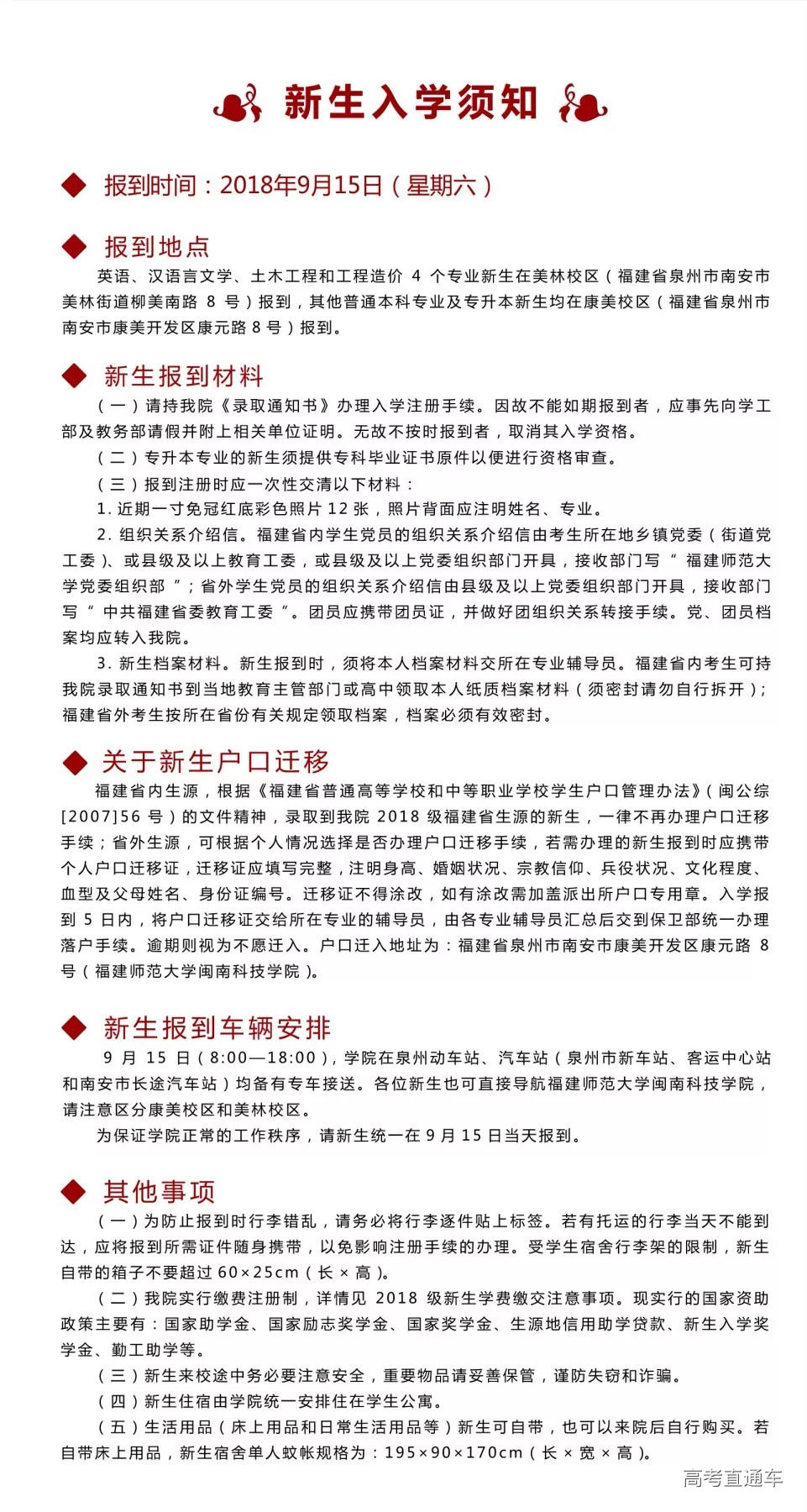 七、报到地点:福建省漳州市迎宾大道鹤鸣路1号 漳州理工职业学院新生报到处。