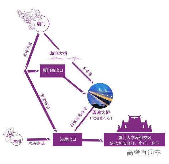 2、自驾车:漳州东高速出口,迎宾大道往漳州市区方向第四个红绿灯路口右拐(小港北路),第一个红绿灯右转600米可到学校。