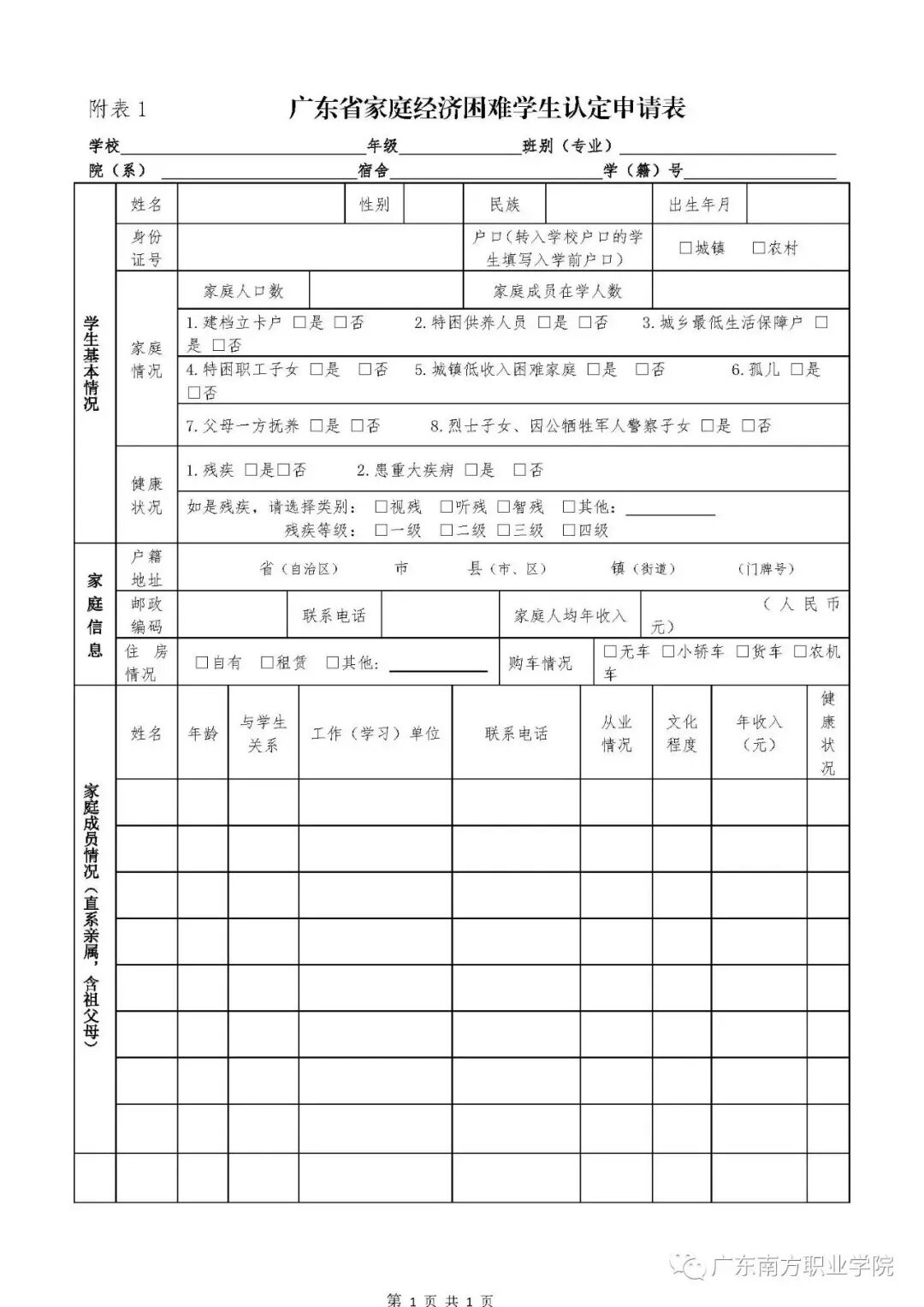(一)填写广东省家庭经济困难学生认定申请表