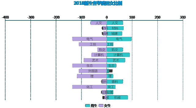 在众学院中,男生比重最大的是机械学院,男生占比将近90%。而女生占比最大的学院为外国语学院,竟达到83%,强烈建议机械学院与外国语学院开展联谊活动。最后,化工学院以男女比接近1:1荣获男女比例最为均衡的学院。