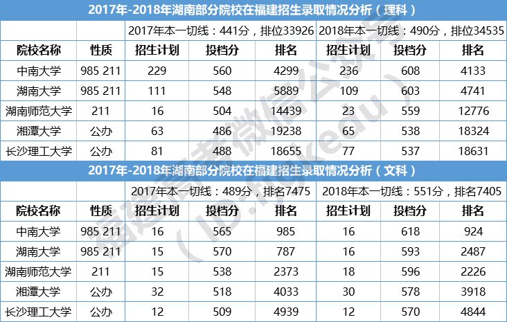 湖北省教育资源好,高校水平普遍较高,从近两年录取情况来看,录取分数普遍较高,招生计划并不多,报考竞争较大。以上介绍院校中大多偏向类院校,在填报时要综合考虑学校性质等理性填报志愿。 湖南 湖南是华夏文明的重要发祥地之一,湖南省有普通高等学校124所,其中3所985工程重点建设高校,拥有3所国家211工程重点建设高校。 院校合并的好例子,“三校合一,其力断金”中南矿冶、长沙铁道、湘雅医都是各有优势的,数学、材料科学与工程、冶金工程、矿业工程为世界一流学科建设学科。 始于岳麓书院,千年学府、百年名校, 学校的好专业都是热门专业,报考性价比挺高,车辆工程、土木工程、建筑学还是强推。其中化学、机械工程为世界一流学科建设学科。