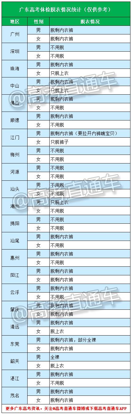 其实全国大部分的地区,应该是不需要脱光的,只要把袖子撸起来就可以了。据我们的了解,福建不需要脱衣服的~但是有些地区还是要求脱衣服检查的~小车之前就整理过广东地区体检脱衣服的情况,我们重温一次!