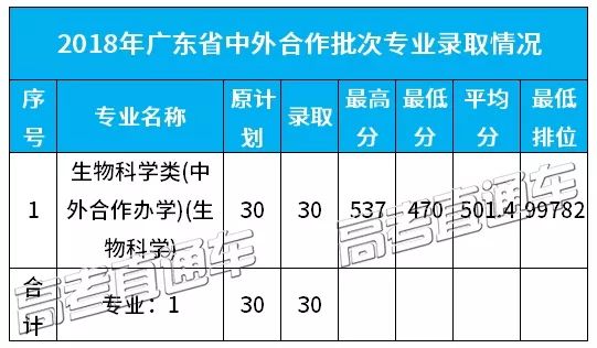 中外合作批次只有理科的生物科学类专业在招生,招生的录取最低分(470分)与最高分(537分)相差67分,满档录取!学费可能会比较贵,但是录取分数适中,同学们可以根据自身条件酌情报考!