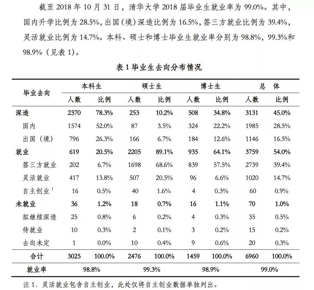 清华大学2018届毕业生中,直接创业人数为60人,其中本科生16人,硕士生40人,博士生4人。创业毕业生主要来自美术学院(17人)、经管学院(14人)和计算机系(6人)。