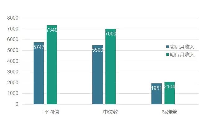 2018 届硕士生的平均月收入为 5747 元,比其求职时期待的月收入(7340元)低 1593 元。本科生的平均月收入为 4498 元,比其求职时期待的月收入(5157元)低 659 元。