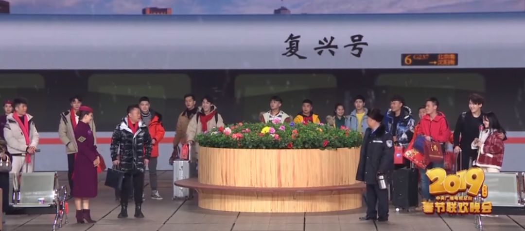 2019央视春晚小品《站台》中,一列复兴号列车疾驰而过。