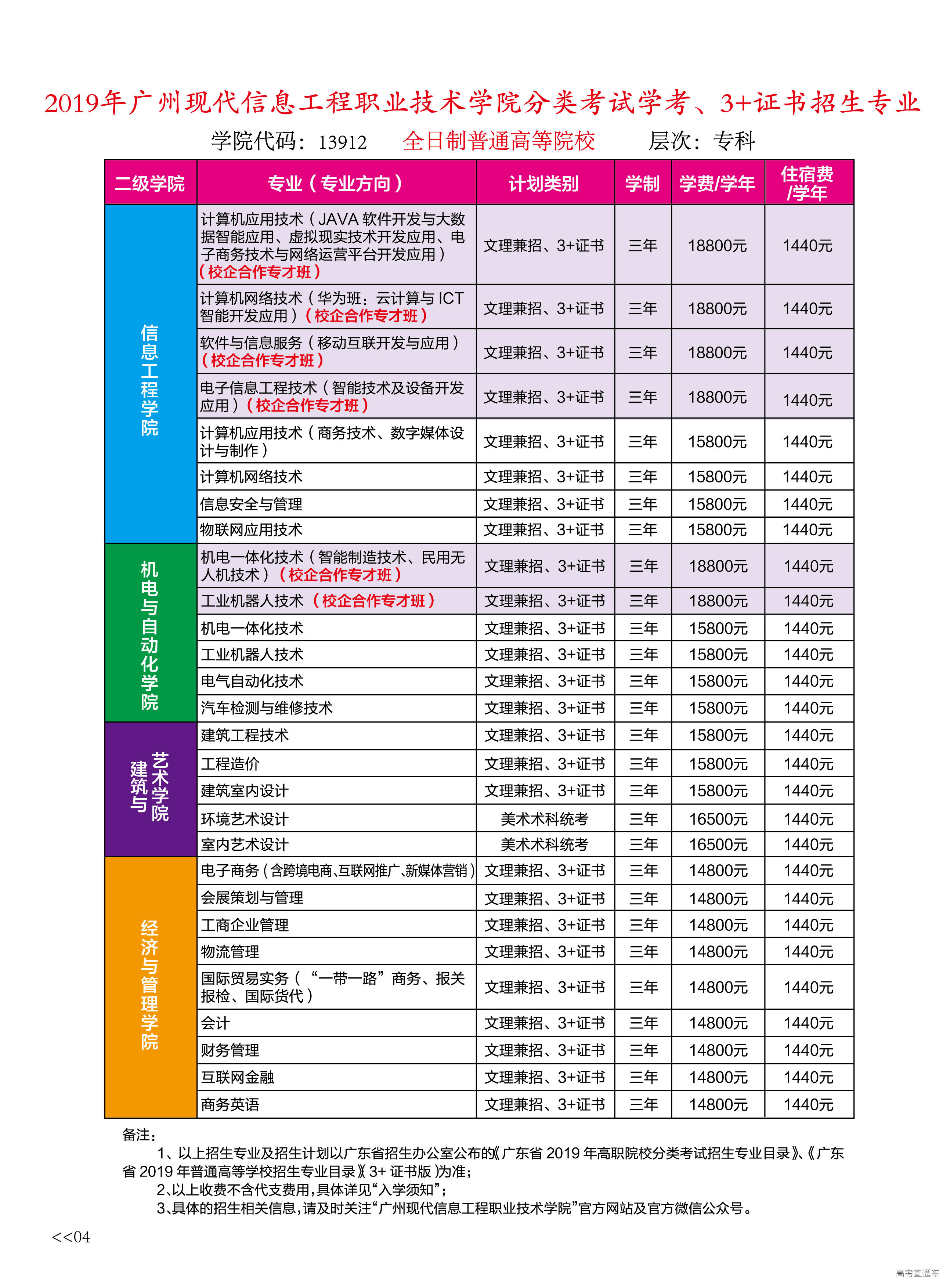 广州现代信息工程职业技术学院2019年分类考试招生计划