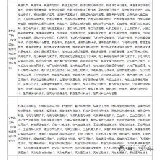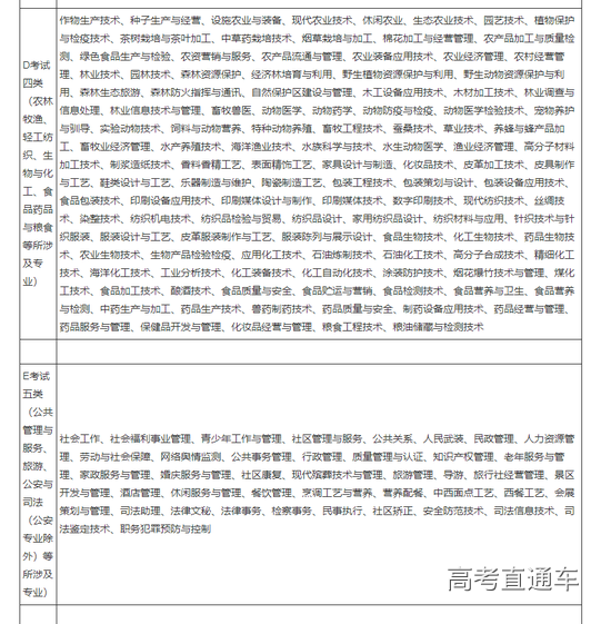 各考试类涵盖专业如下(涵盖专业来源于教育部《普通高等学校高等职业教育(专科)专业目录》,具体招生专业详询招生院校或以公布的招生计划为准):