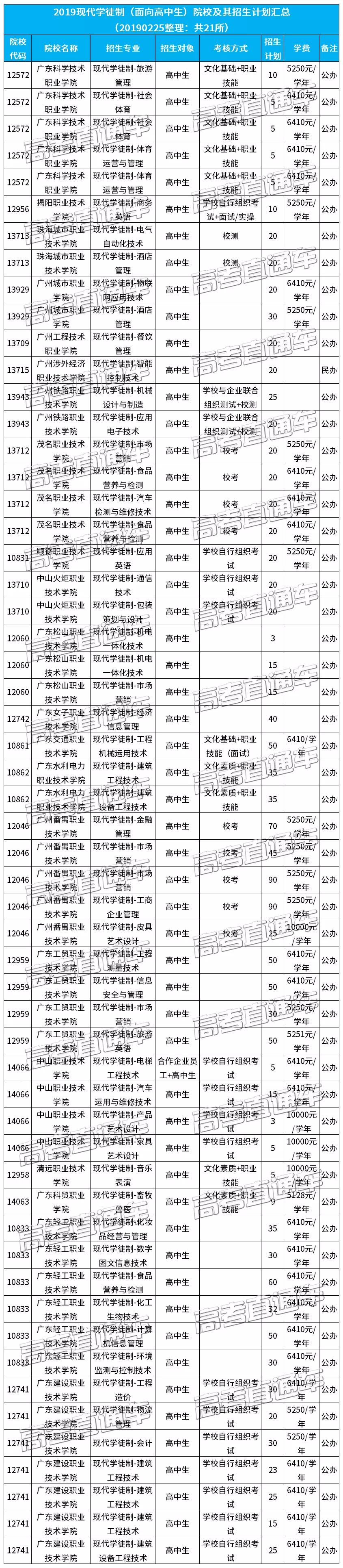 1、本表汇总了截至2月25日,已公布“现代学徒制”招生计划的院校、专业、考核方式、招生计划、学费情况,空白处表示尚未明确、 2、目前仍有院校未公布计划,广东中学生会持续更新。表格内如有疏漏欢迎指出,并以院校最新公布为准。