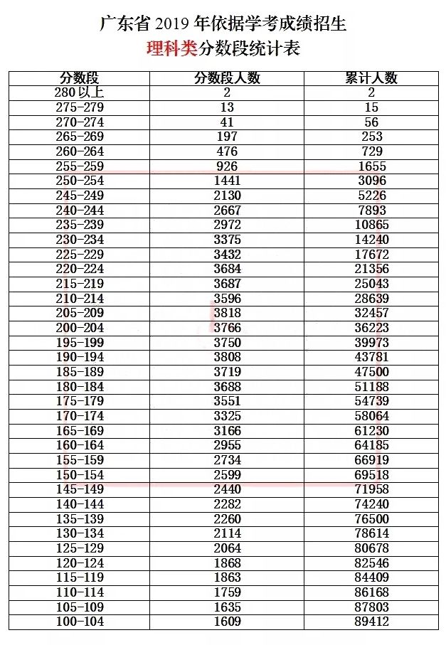 2019年广东学考录取志愿填报即将于3月11日-15日进行,不少同学已经迫不及待地想知道自己在全省考生中的排位,想知道比自己高分的考生都在什么水平上。 来了!大家期待已久的广东省2019年依据学考成绩招生考生各分数段成绩数据今天终于公布了,一起来看看! 文科:5898人 文科:112012人 2019年广东省依据学考成绩招生分数段统计表(文科)