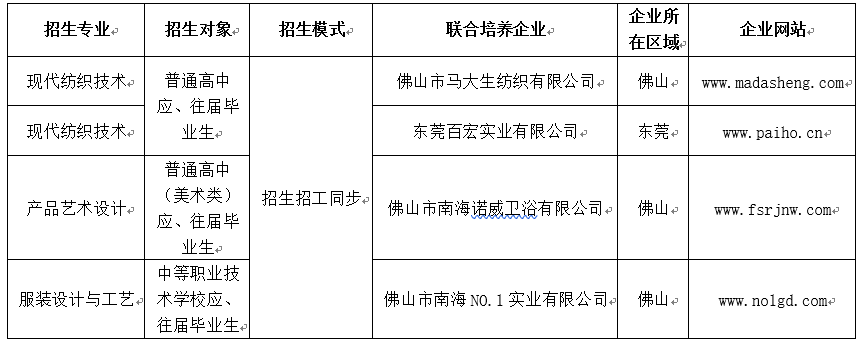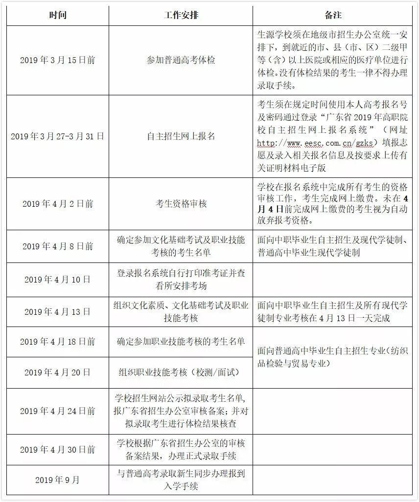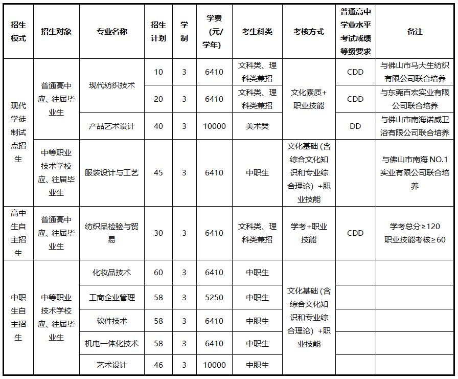 (一)广东职业技术学院2019年通过高职自主招生现代纺织技术、产品艺术设计、服装设计与工艺专业开展现代学徒制专业试点招生,实行招工招生同步的方式。