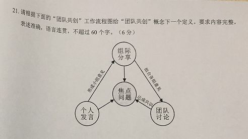 语言文字运用,第21题,考察“下定义”,了解下定义的表达方式,弄清“团队共创”的内在逻辑,组织好语言,即可得出答案。