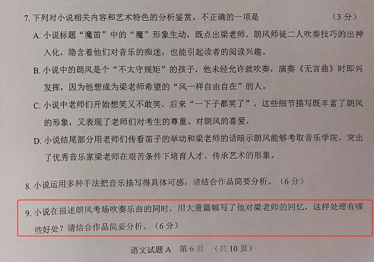 文学类阅读考查小说,设题更加明确,但难度有所增大,如第8题“多种手法把音乐描写得具体可感”,指向“手法”的考查,第9题考查小说选材和布局谋篇,综合性较强,难度较大。此外,实用类阅读的放到了文学类阅读的前面,试卷整体逻辑性更严谨。