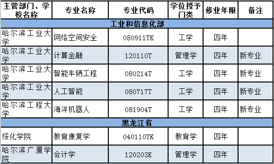 黑龙江省高校新增备案本科专业44个,新增审批本科专业7个,撤销本科专业2个,具体哪些学校哪些专业有变化,随小编一起看全名单↓