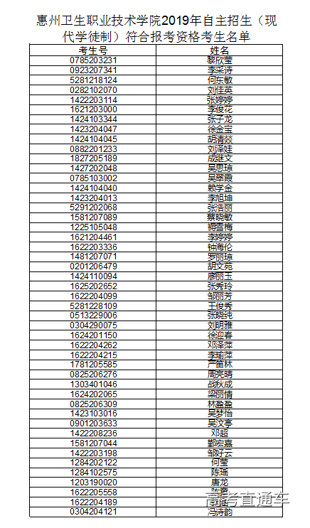 附:《2019年自主招生(现代学徒制)符合报考资格的考生名单》