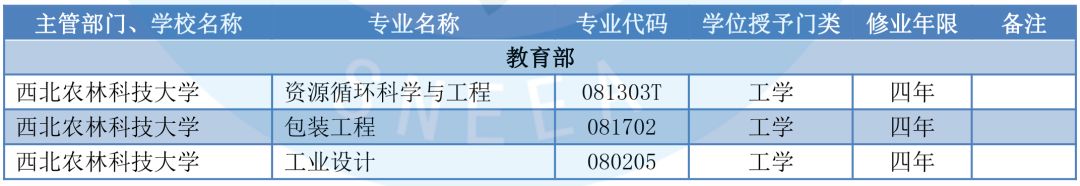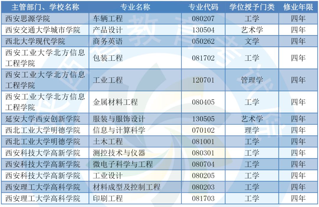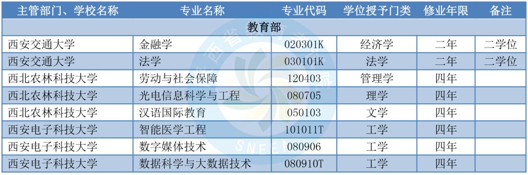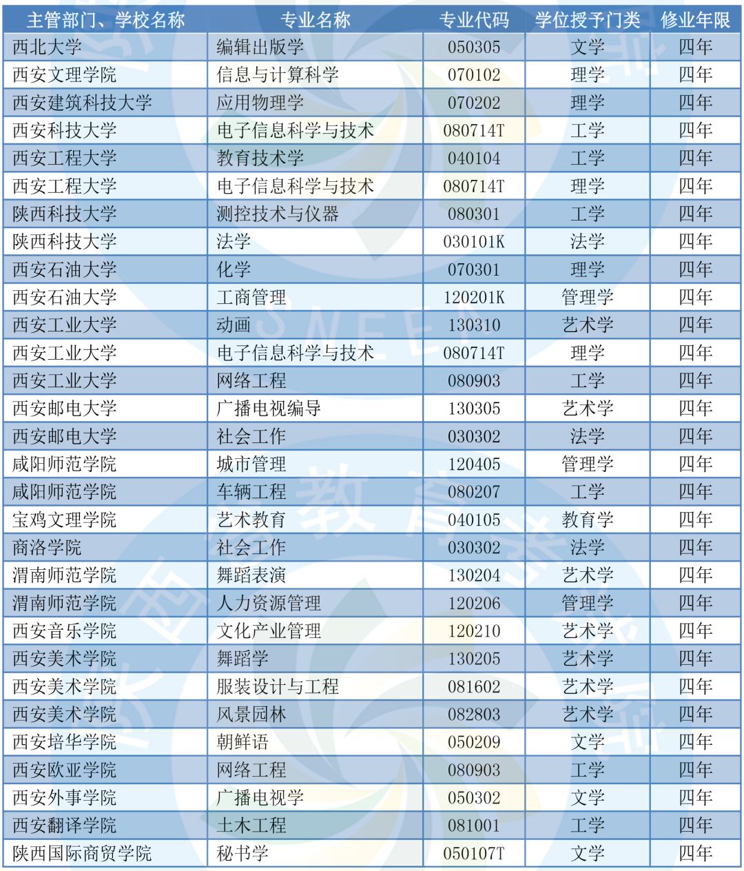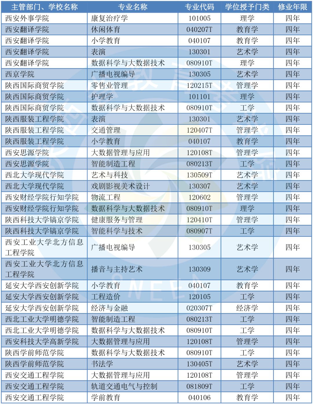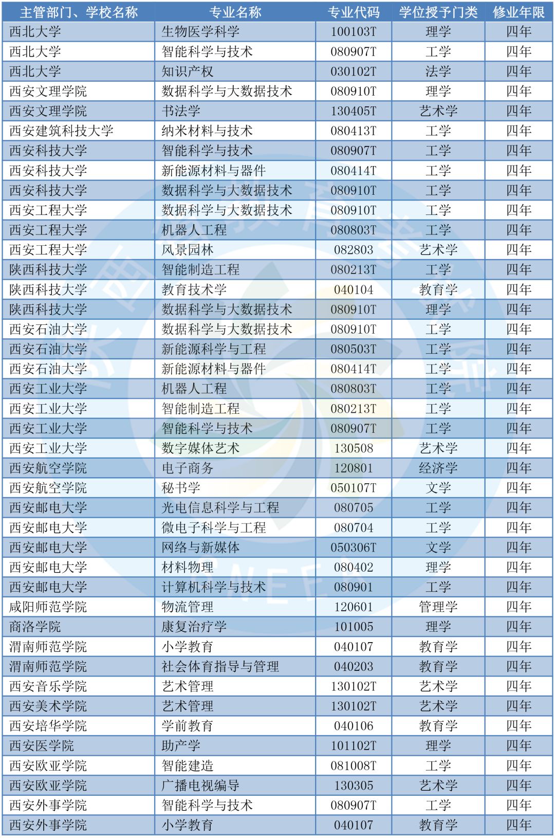 陕西高校的具体情况为: 一、新增备案本科专业名单