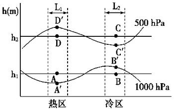(1)从等压面的定义看,PA′=PB′=1000 hPa,PD′=PC′=500 hPa。