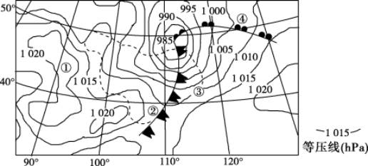 (2)如果图中等压线状况维持不变,某自驾游汽车从②地经③地到④地,天气变化可能是( )