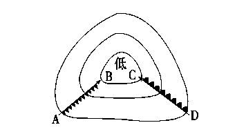 (1)形成:在中高纬地区,一般气旋和锋面联系在一起,形成锋面气旋。气旋的水平气流是向中心辐合。在槽线,如图中AB线、CD线,两侧冷暖气流易相遇形成锋面。而反气旋的气流呈辐散状,在脊线两侧气流不可能相遇,故不能形成锋面。