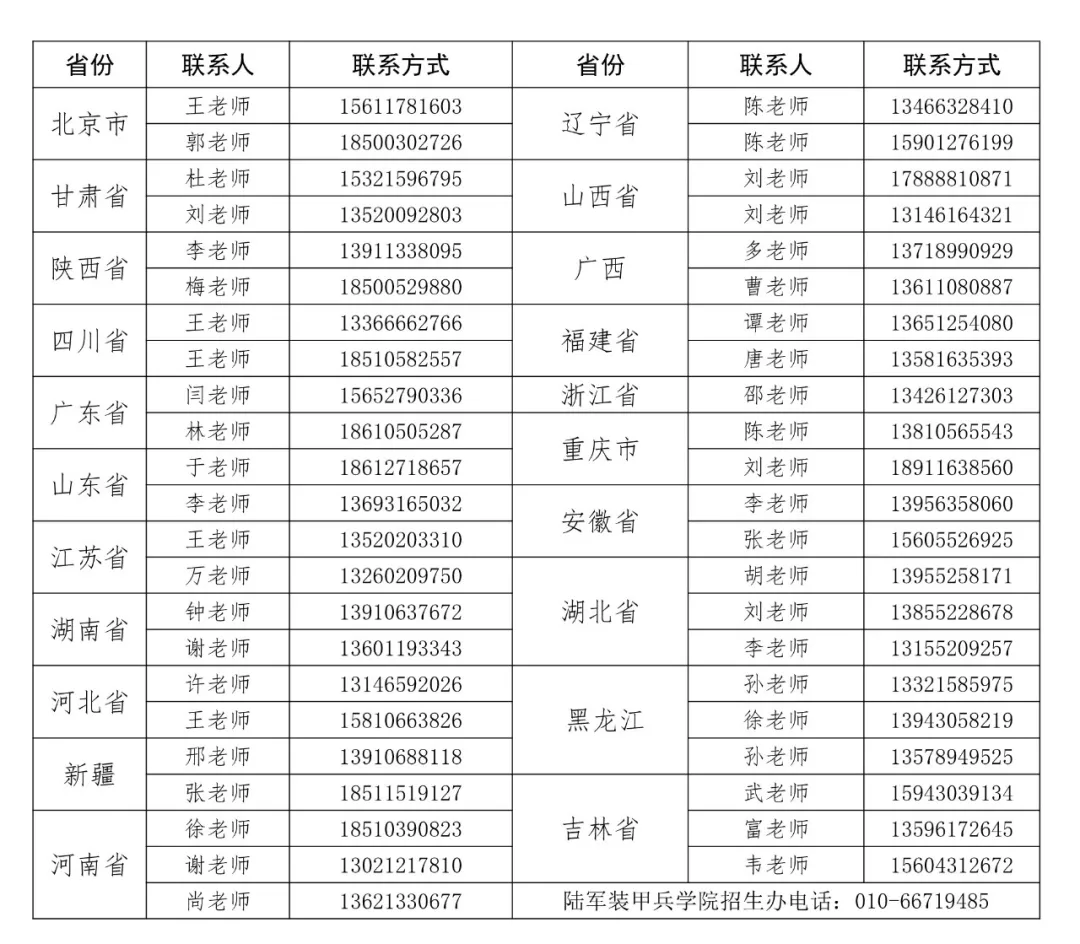 5月9日至19日,陆军装甲兵学院组织40余名招生教员赴21个省(直辖市、自治区)开展本科招生现地宣传。欢迎广大家长、考生与招生教员联系沟通。