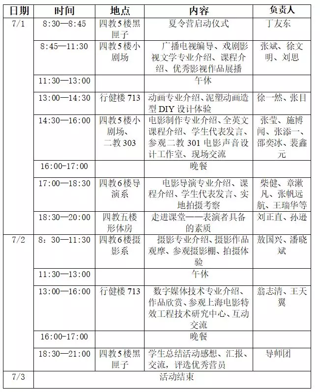 地点:延长路149号上海大学延长校区第四教学楼5楼黑匣子,请参加夏令营的同学7月1日上午8:15到第四教学楼5楼黑匣子集合。