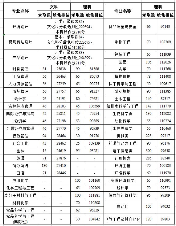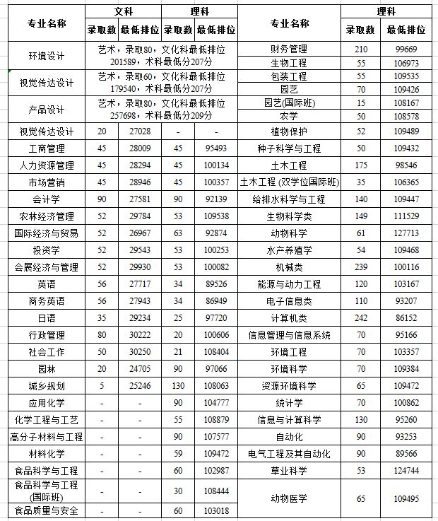 仲恺农业工程学院2016~2018年招生录取最低排位