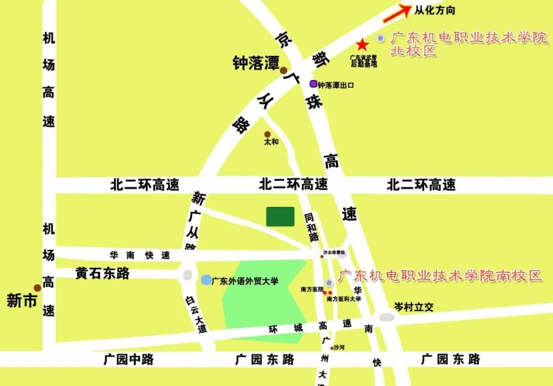 北校:广东省广州市白云区钟落潭马沥村广东机电职业技术学院北校区,邮编:510550