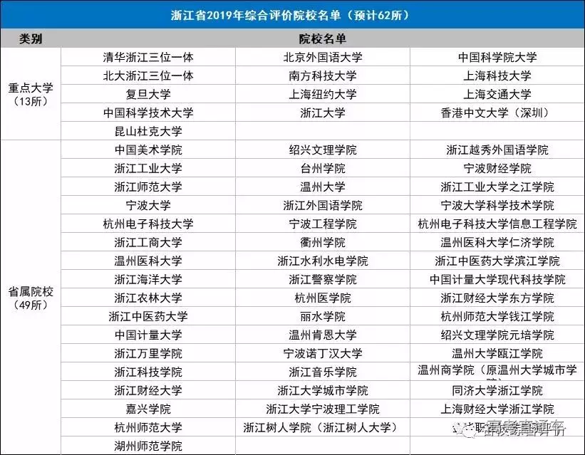 说明:表格依据2019年浙江省三位一体综合评价招生信息进行统计。