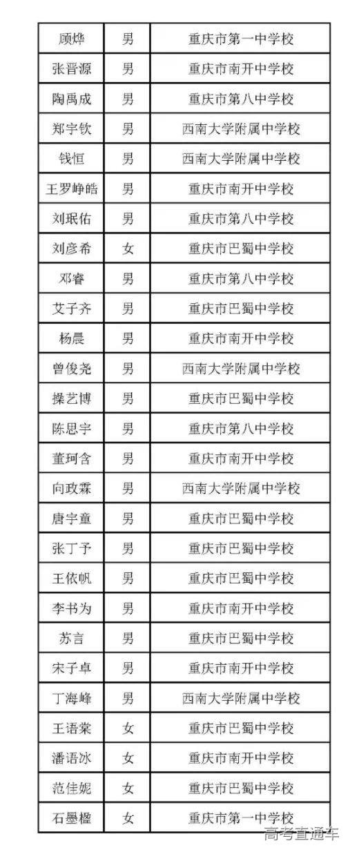 2024年第38届全国中学生化学竞赛初赛省队名单(重庆)