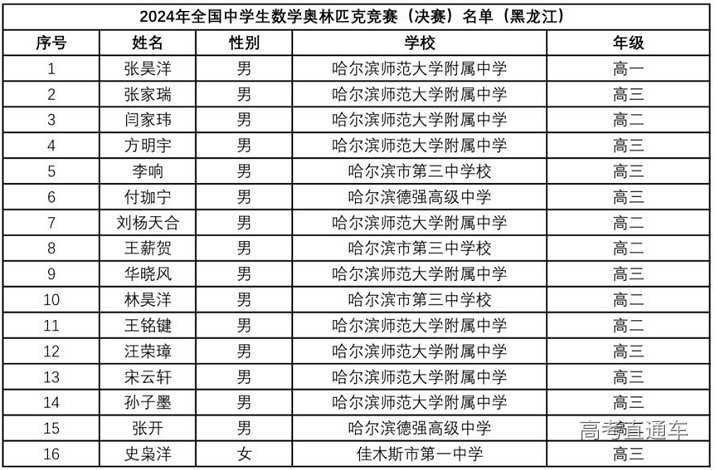 2024年第40届全国中学生数学联赛省队名单(黑龙江)