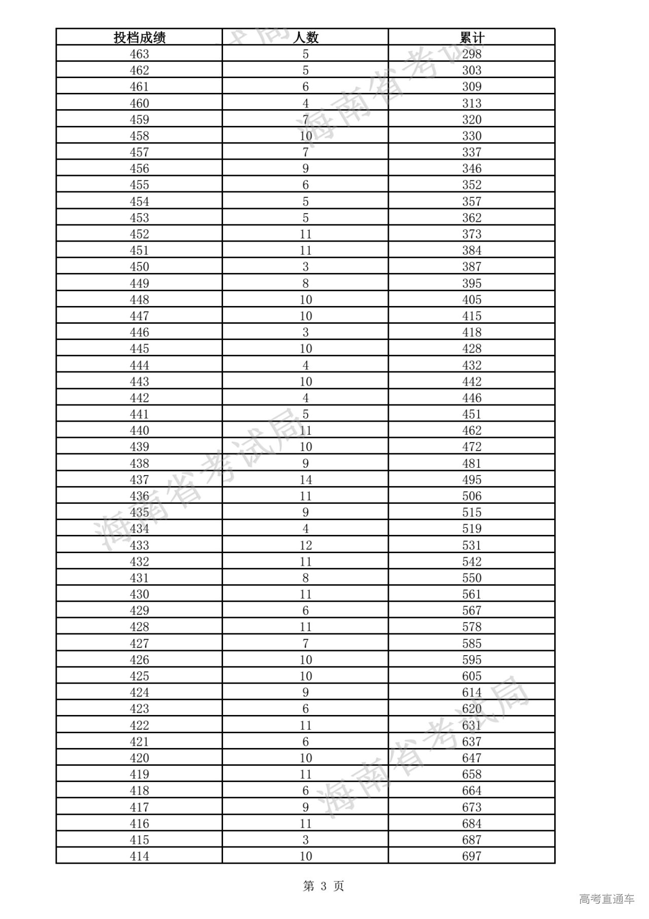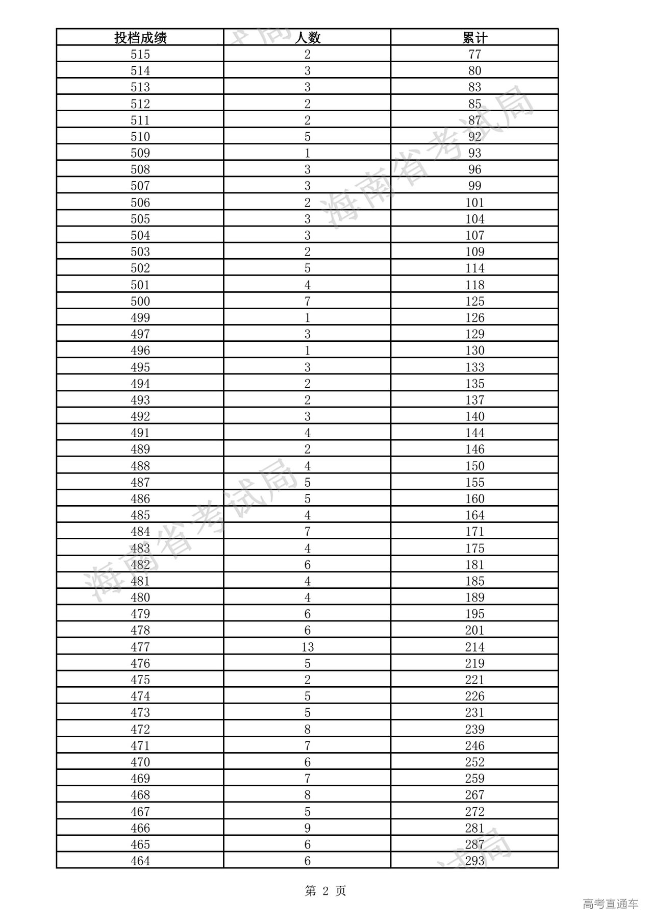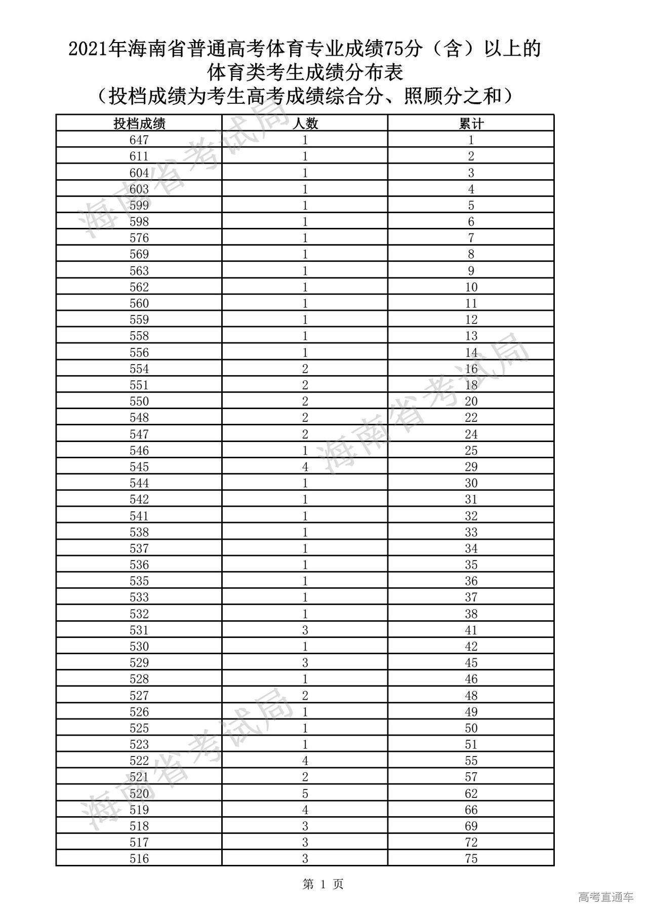2021年海南省普通高考体育专业成绩75分(含)以上的体育类考生成绩分布表