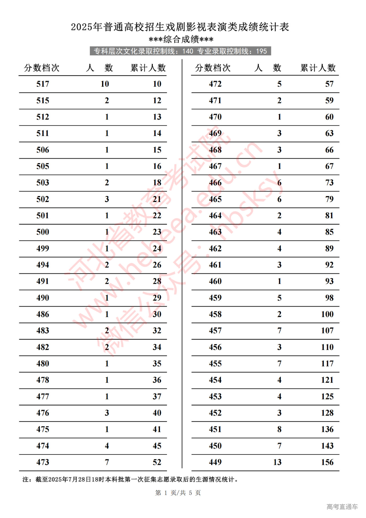 2025年河北省普通高校招生戏剧影视表演类成绩统计表(综合成绩·专业成绩).pdf