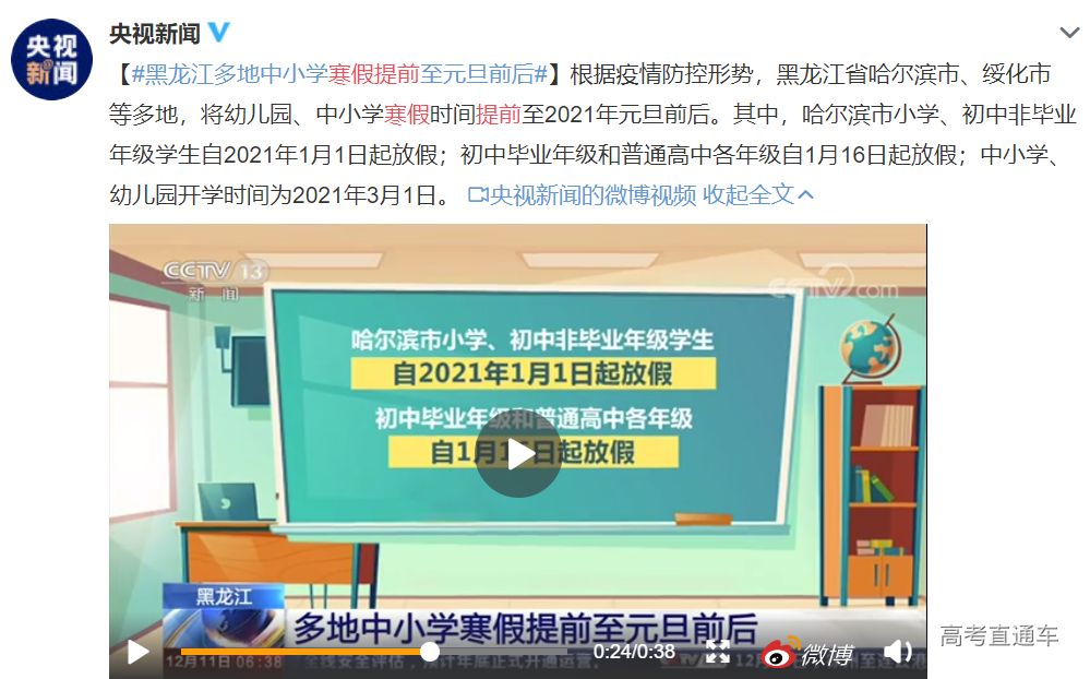 放寒假时间定了!