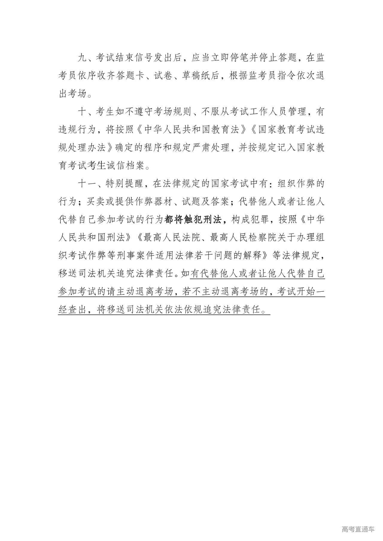 (三)带齐证件材料。考生凭纸质版准考证、有效身份证明原件(含有效期内临时身份证)进入考点,“两证”缺一不可。