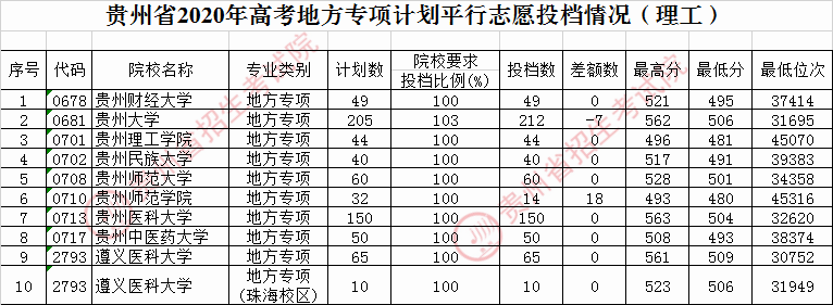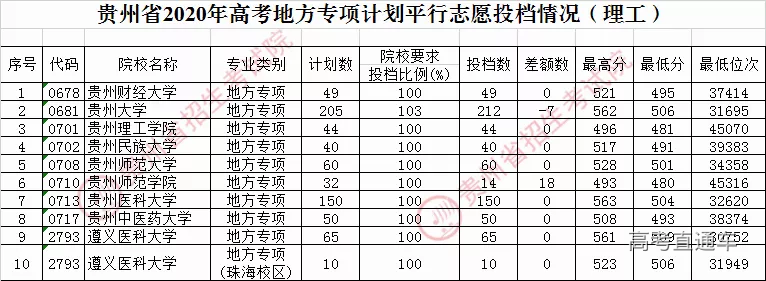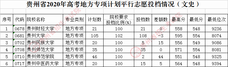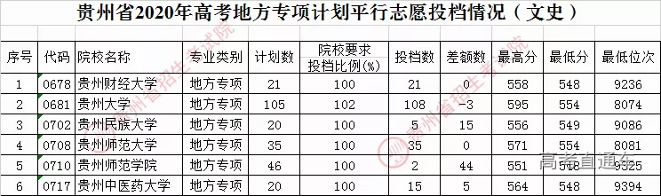 速看!贵州2020高考地方专项计划平行志愿投档情况出炉