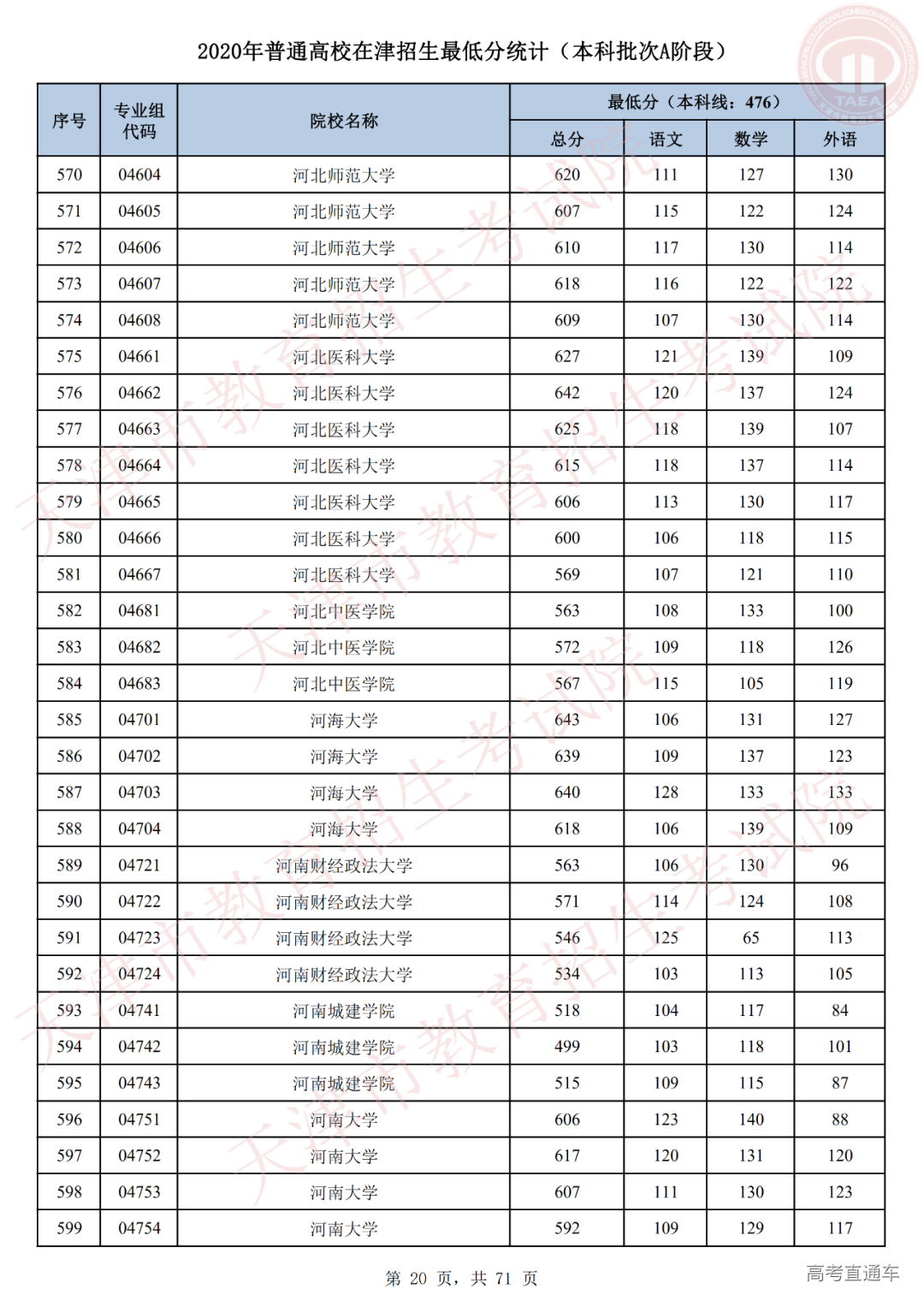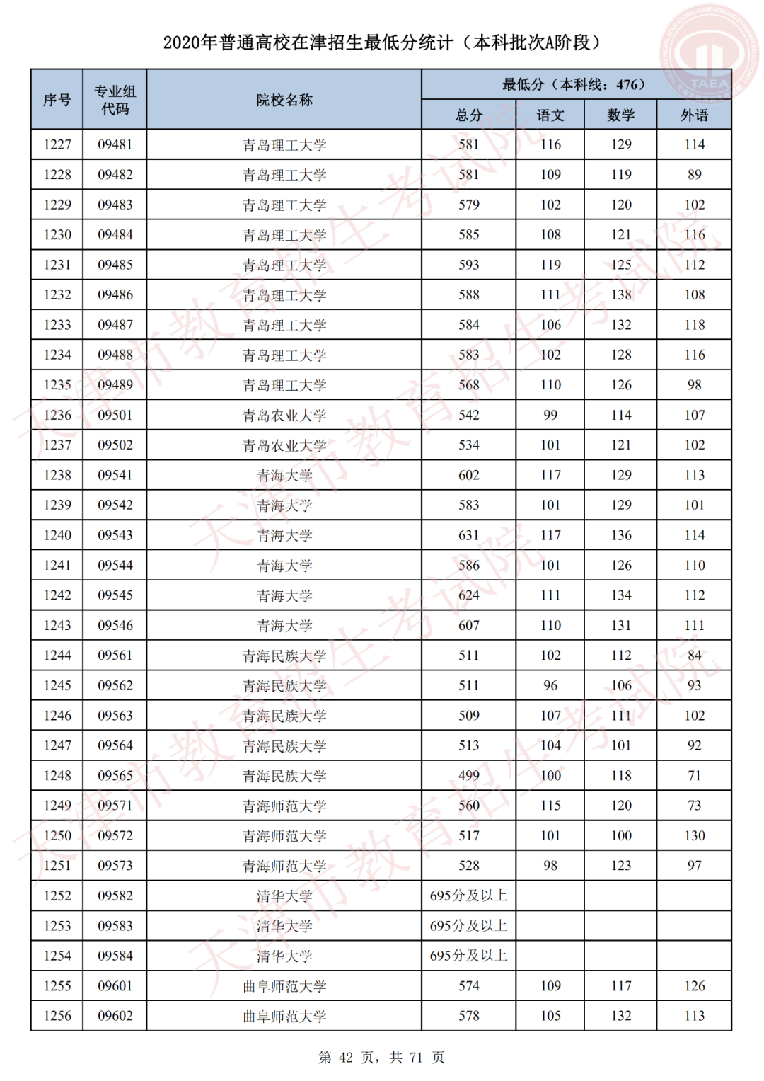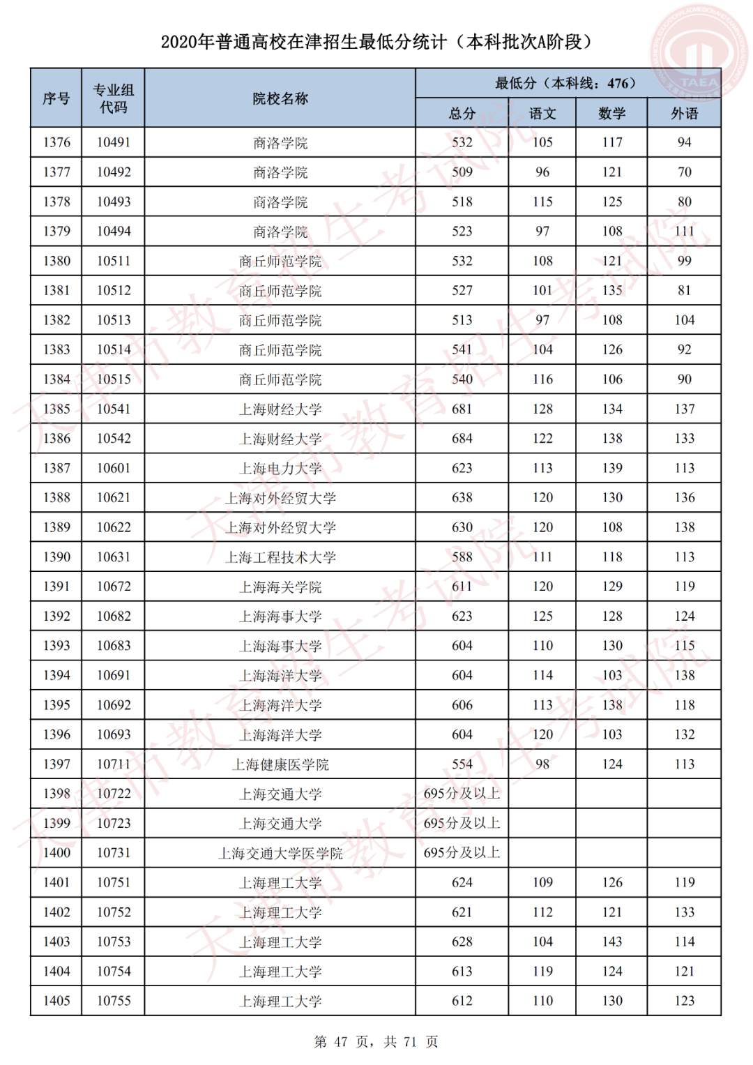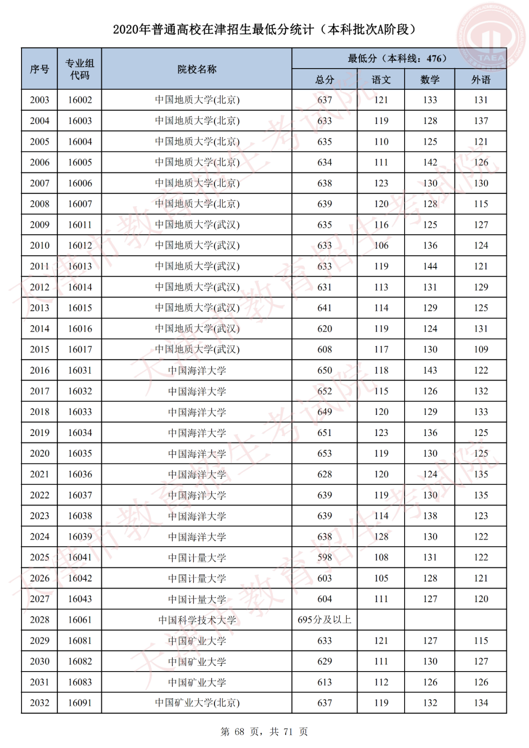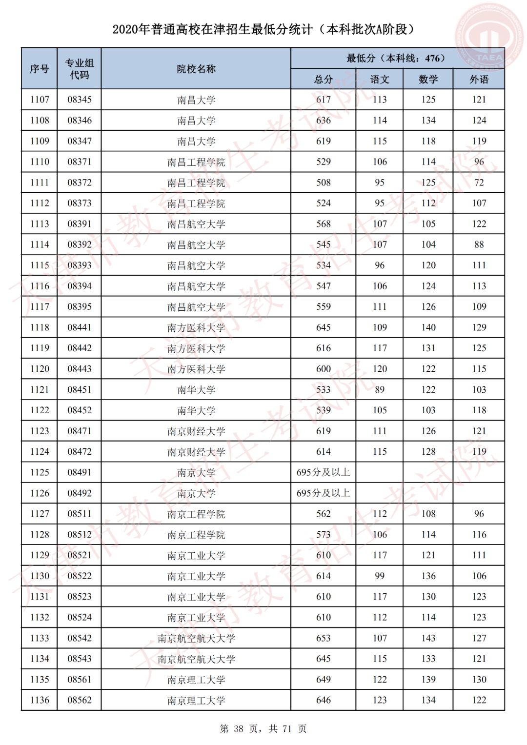 今年是我市新高考改革落地之年,为落实《教育部办公厅关于做好2020年全国普通高校招生录取工作的通知》(教学厅〔2020〕10号)有关要求,避免炒作高分段考生录取情况,积极引导考生树立兴趣选择的良好导向,营造平稳有序的录取环境,自2020年起,我市不再公布普通类本科批次高分段院校专业组具体最低分,今年确定为“695分及以上”的院校专业组不再公布。