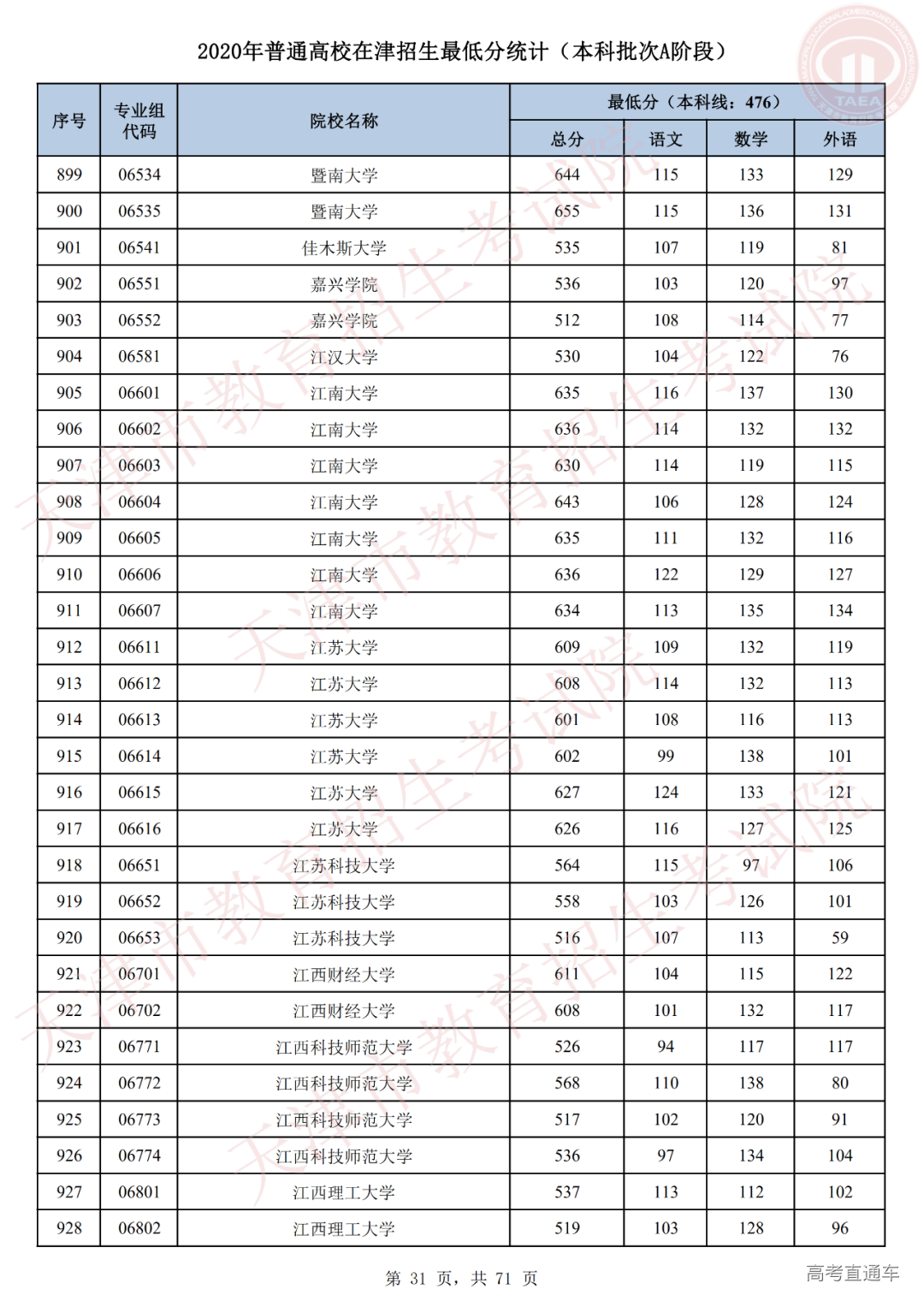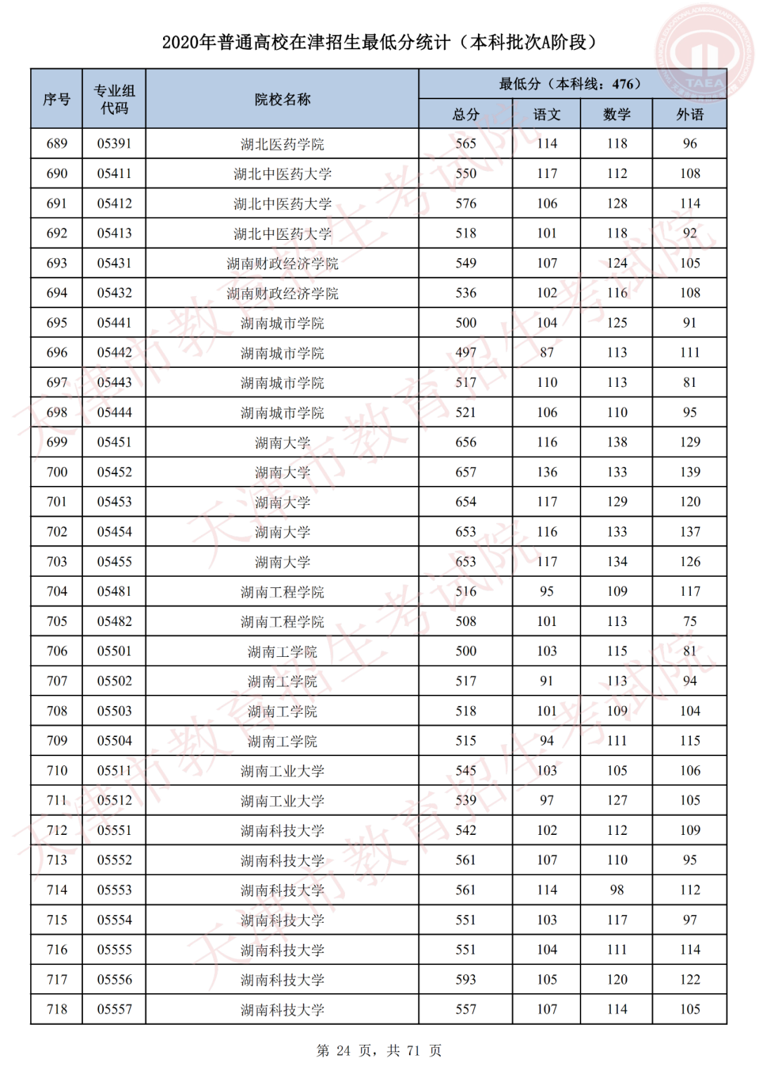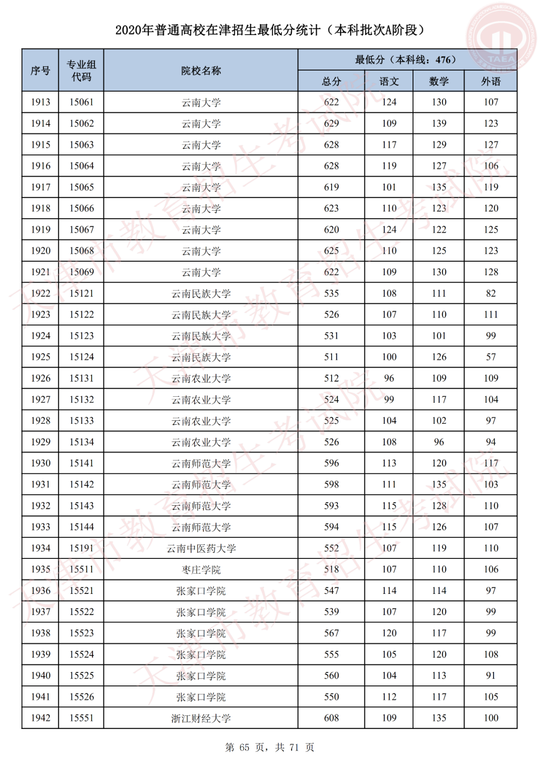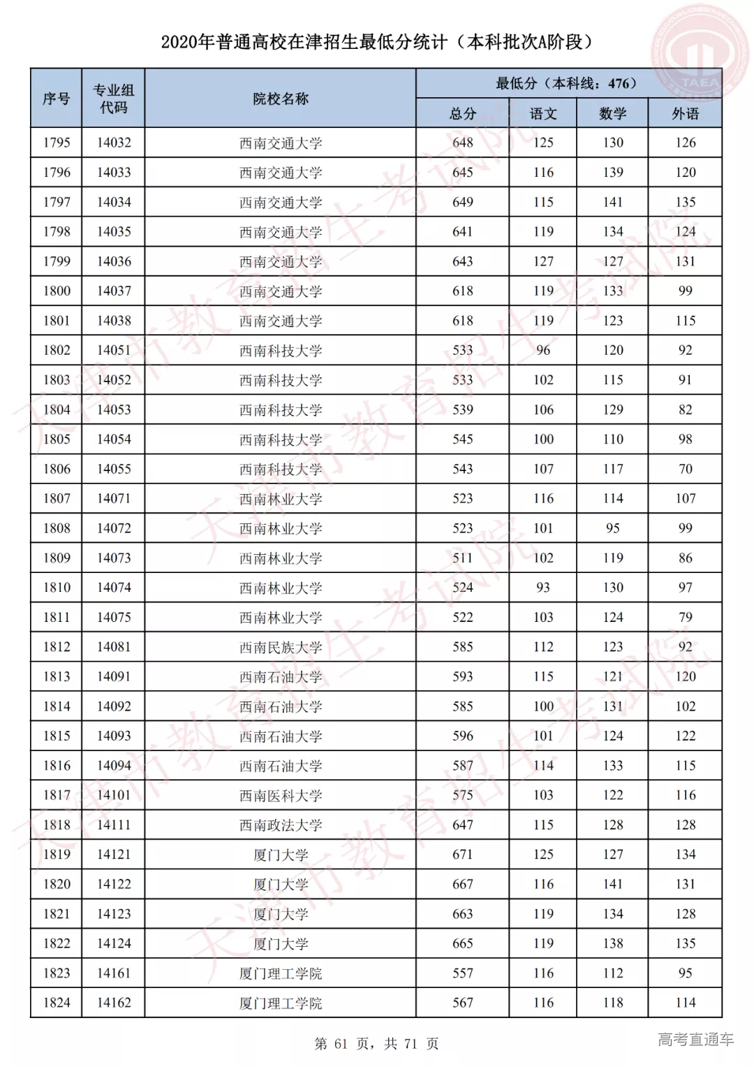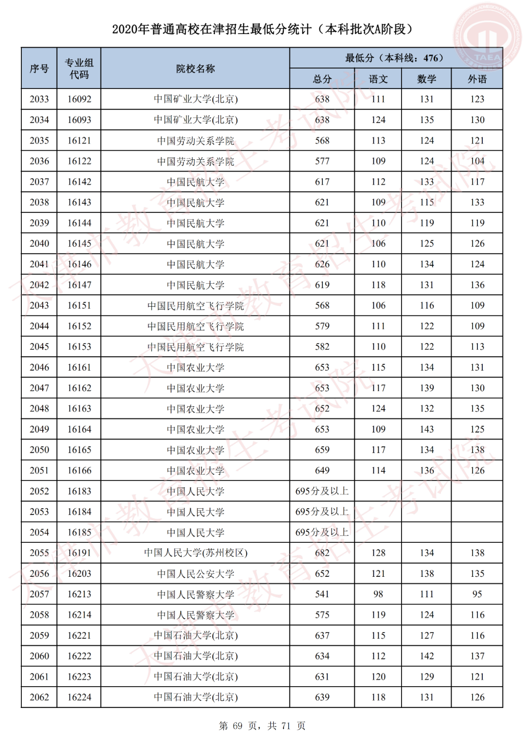 今年是我市新高考改革落地之年,为落实《教育部办公厅关于做好2020年全国普通高校招生录取工作的通知》(教学厅〔2020〕10号)有关要求,避免炒作高分段考生录取情况,积极引导考生树立兴趣选择的良好导向,营造平稳有序的录取环境,自2020年起,我市不再公布普通类本科批次高分段院校专业组具体最低分,今年确定为“695分及以上”的院校专业组不再公布。