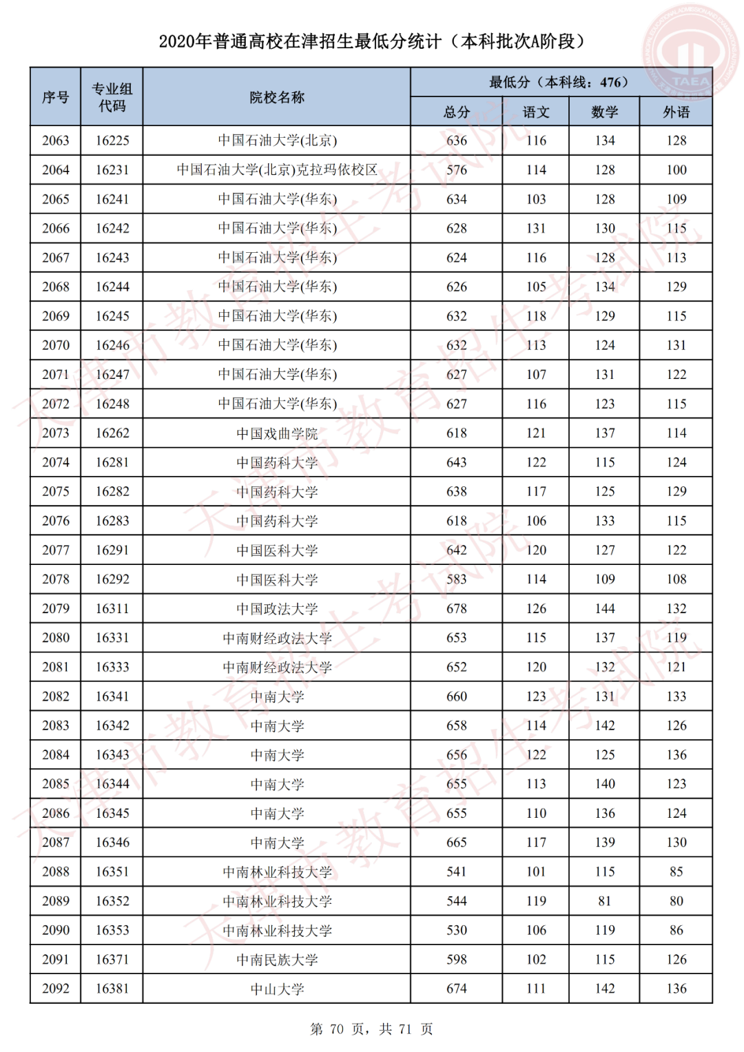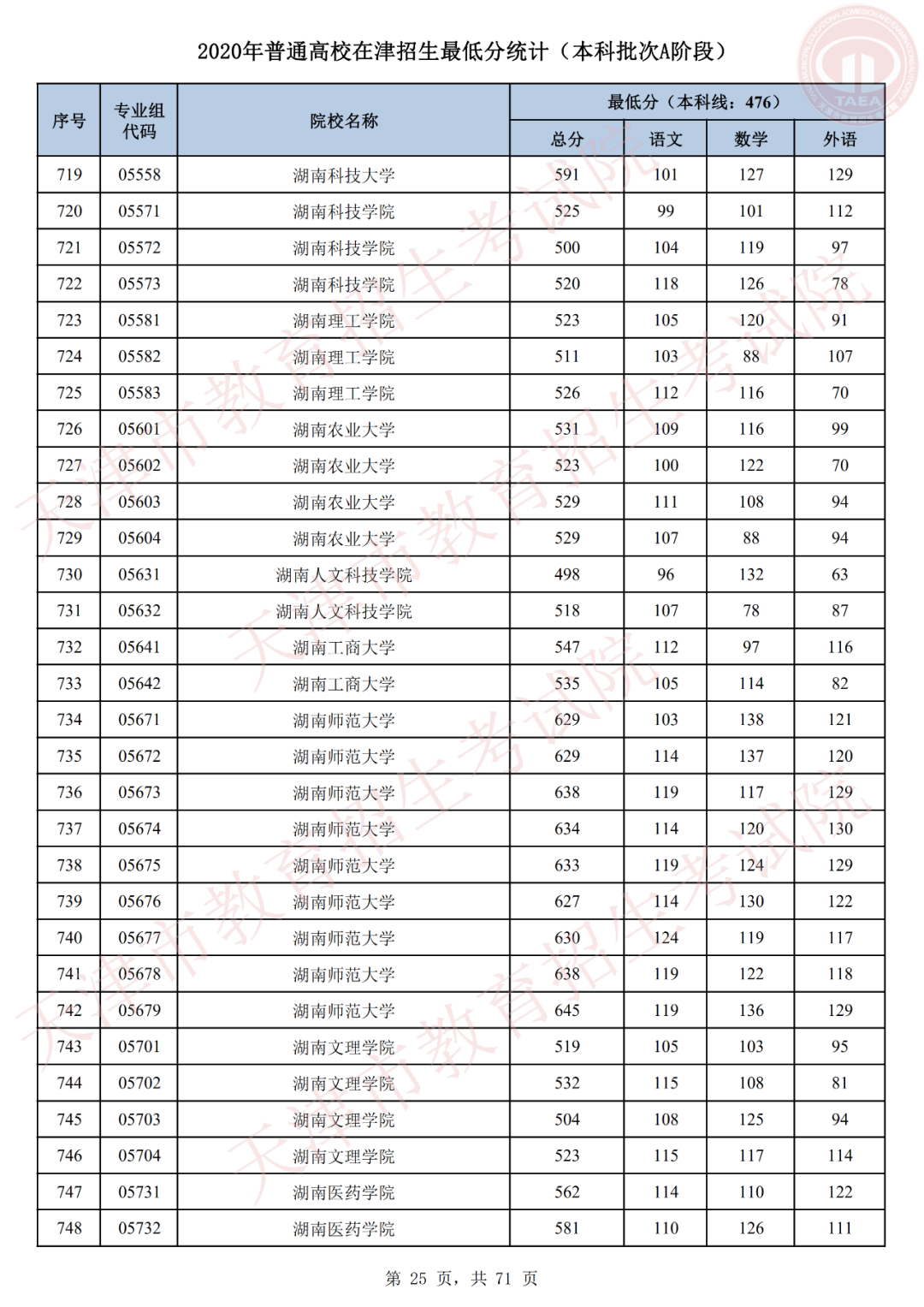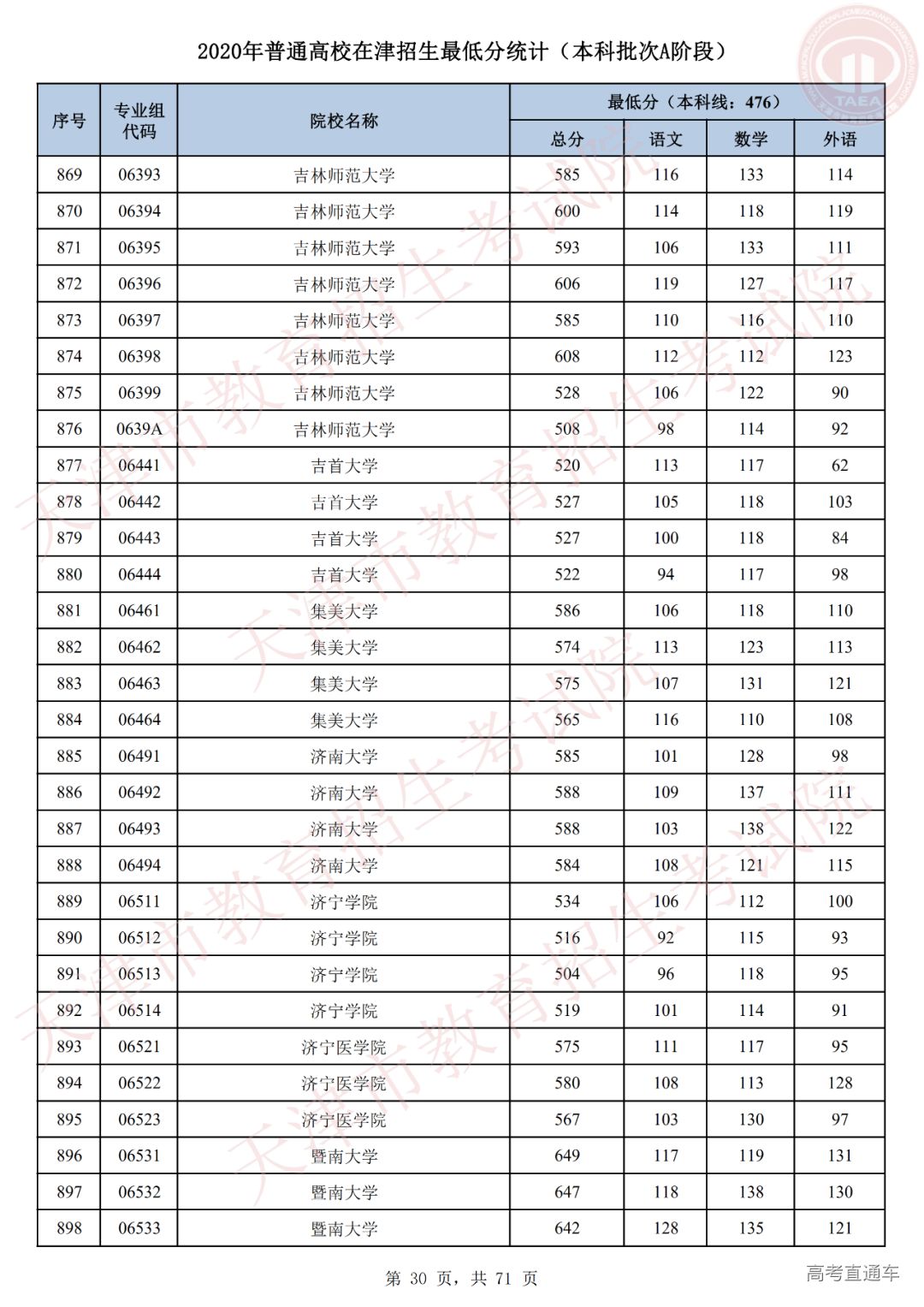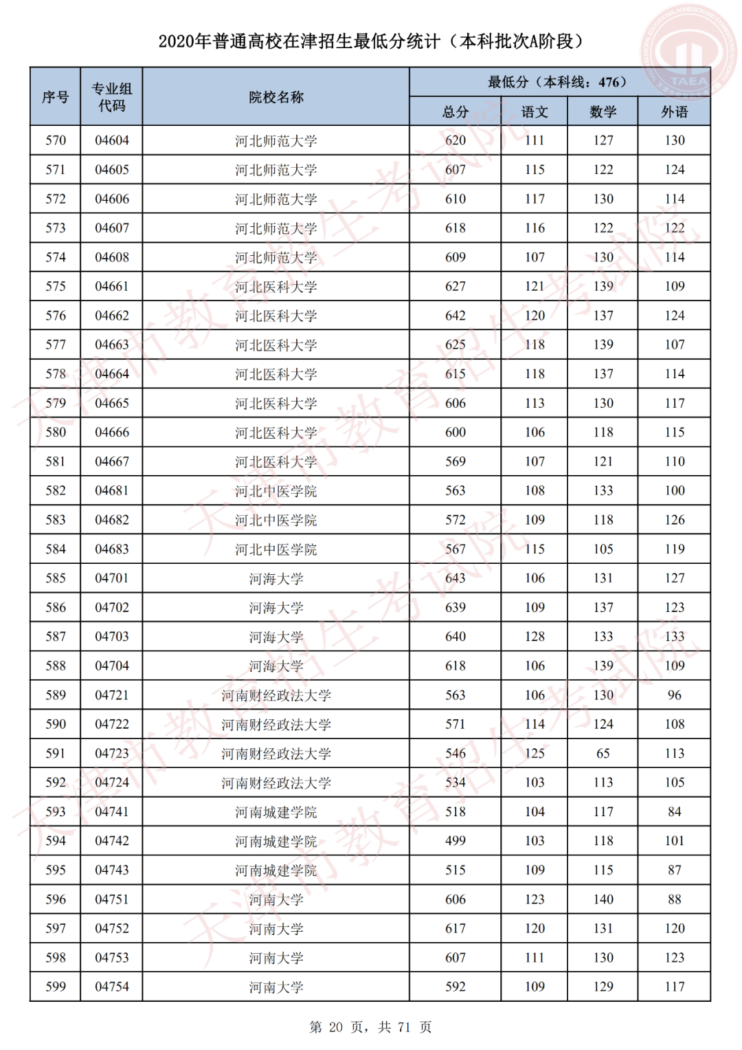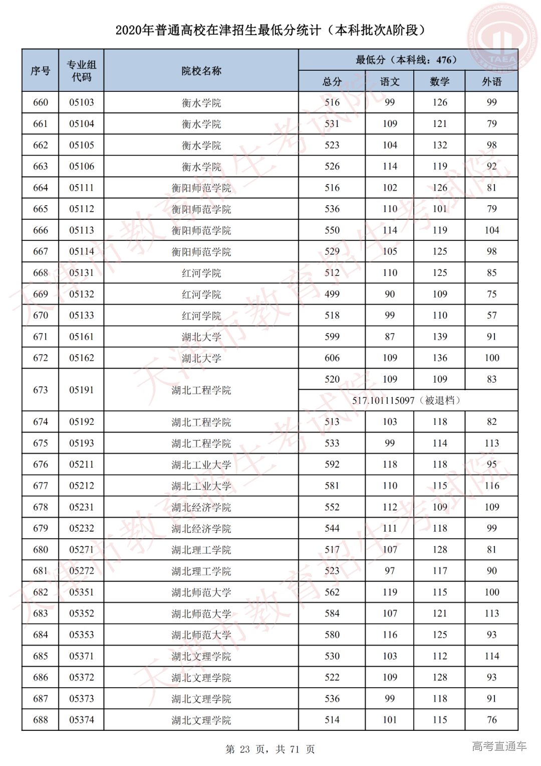 今年是我市新高考改革落地之年,为落实《教育部办公厅关于做好2020年全国普通高校招生录取工作的通知》(教学厅〔2020〕10号)有关要求,避免炒作高分段考生录取情况,积极引导考生树立兴趣选择的良好导向,营造平稳有序的录取环境,自2020年起,我市不再公布普通类本科批次高分段院校专业组具体最低分,今年确定为“695分及以上”的院校专业组不再公布。