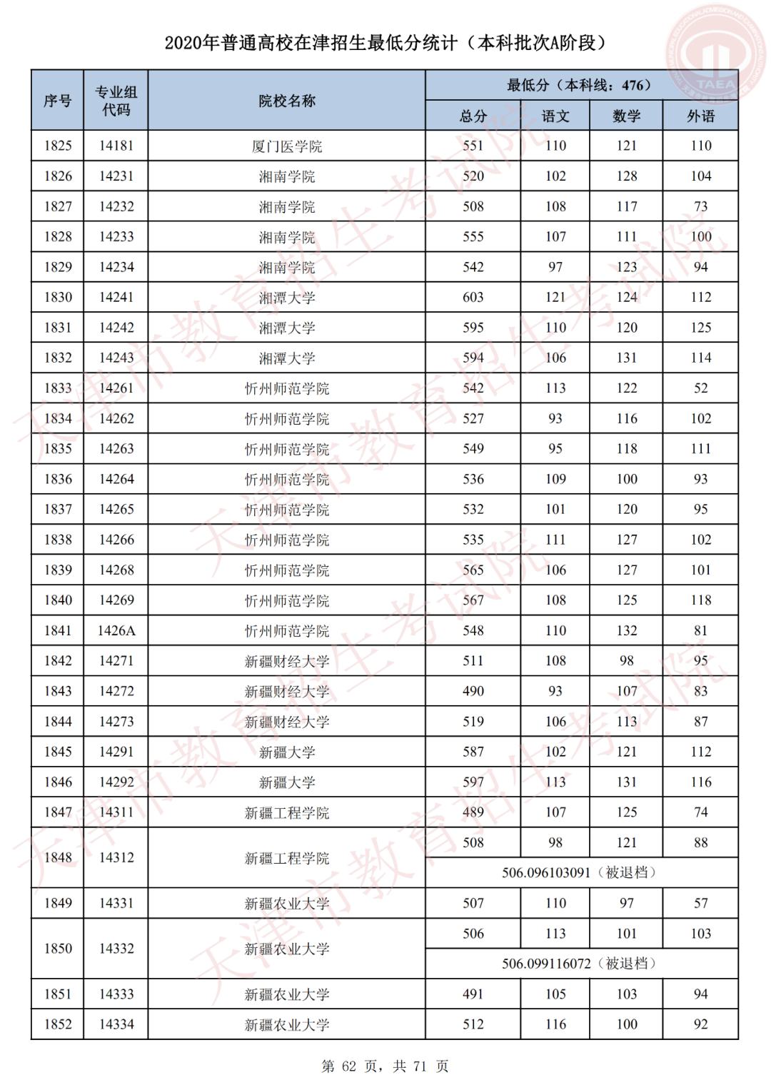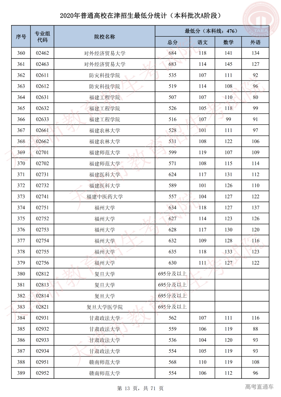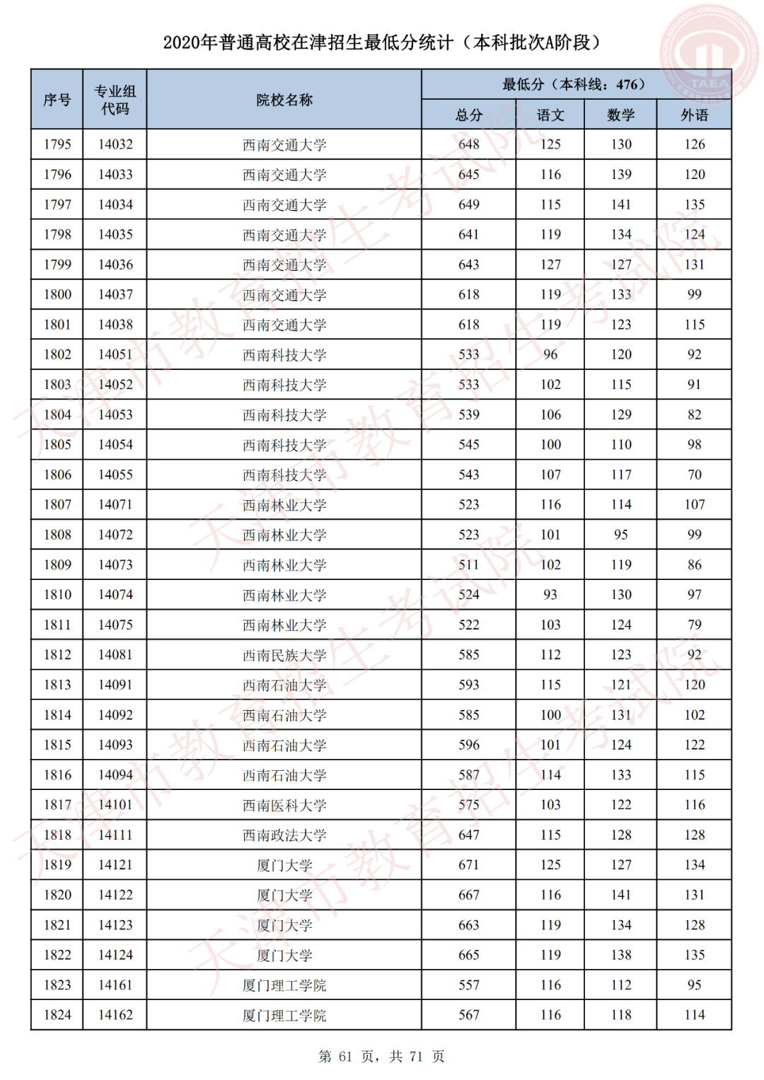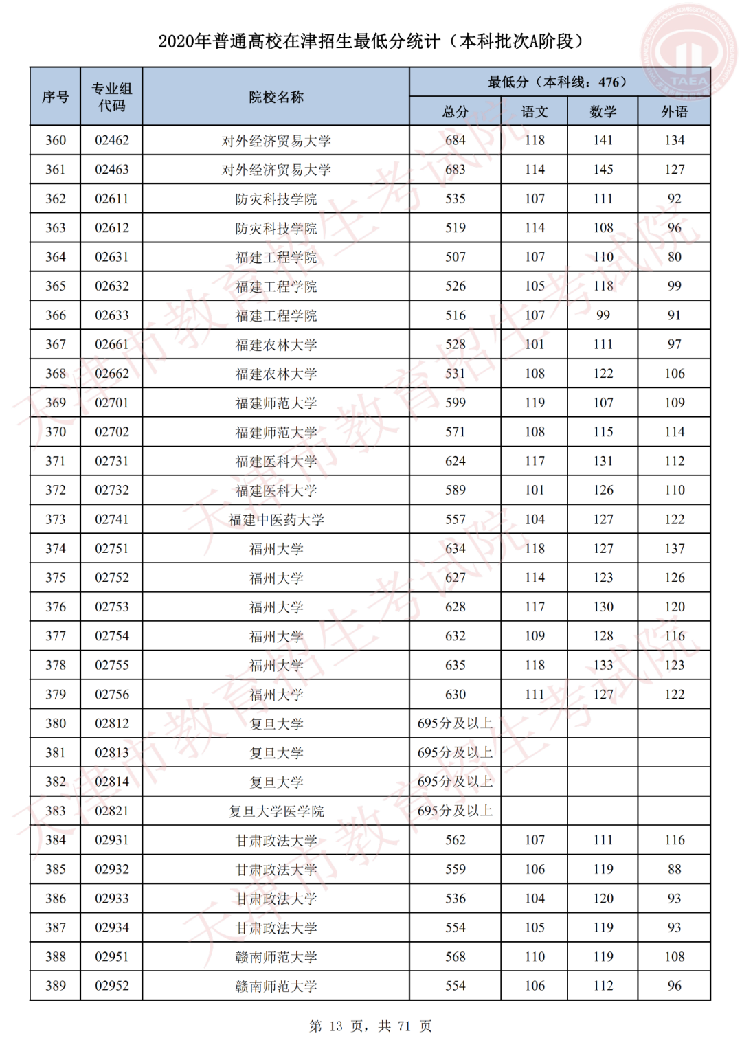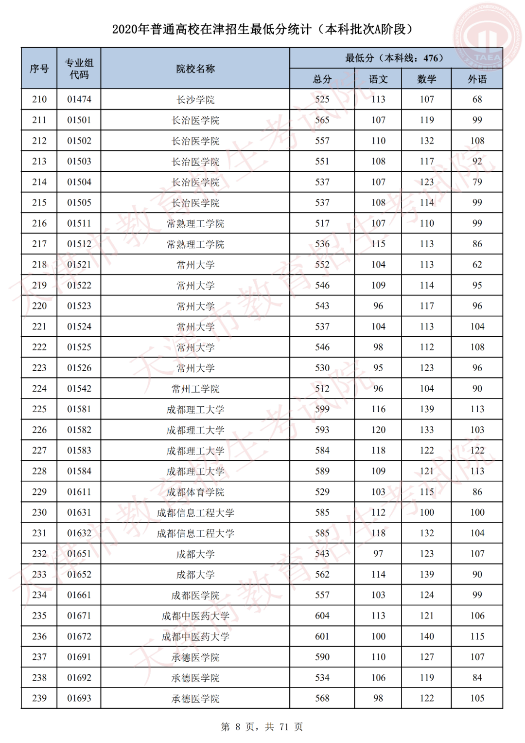 今年是我市新高考改革落地之年,为落实《教育部办公厅关于做好2020年全国普通高校招生录取工作的通知》(教学厅〔2020〕10号)有关要求,避免炒作高分段考生录取情况,积极引导考生树立兴趣选择的良好导向,营造平稳有序的录取环境,自2020年起,我市不再公布普通类本科批次高分段院校专业组具体最低分,今年确定为“695分及以上”的院校专业组不再公布。