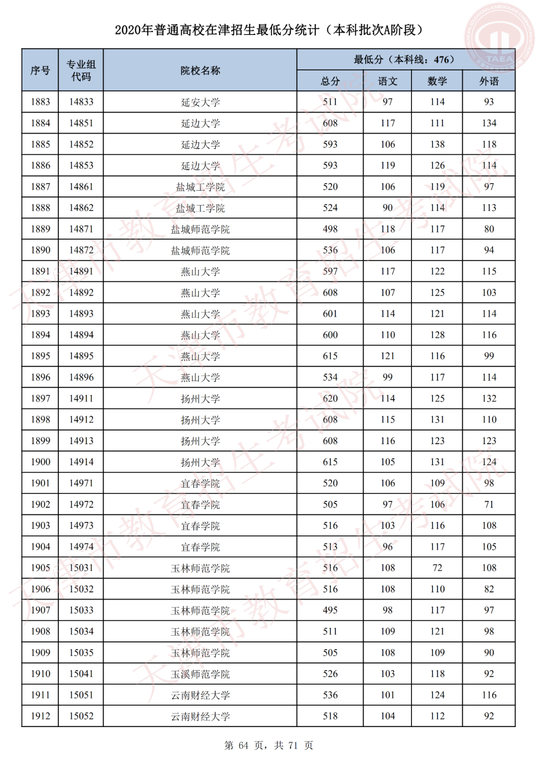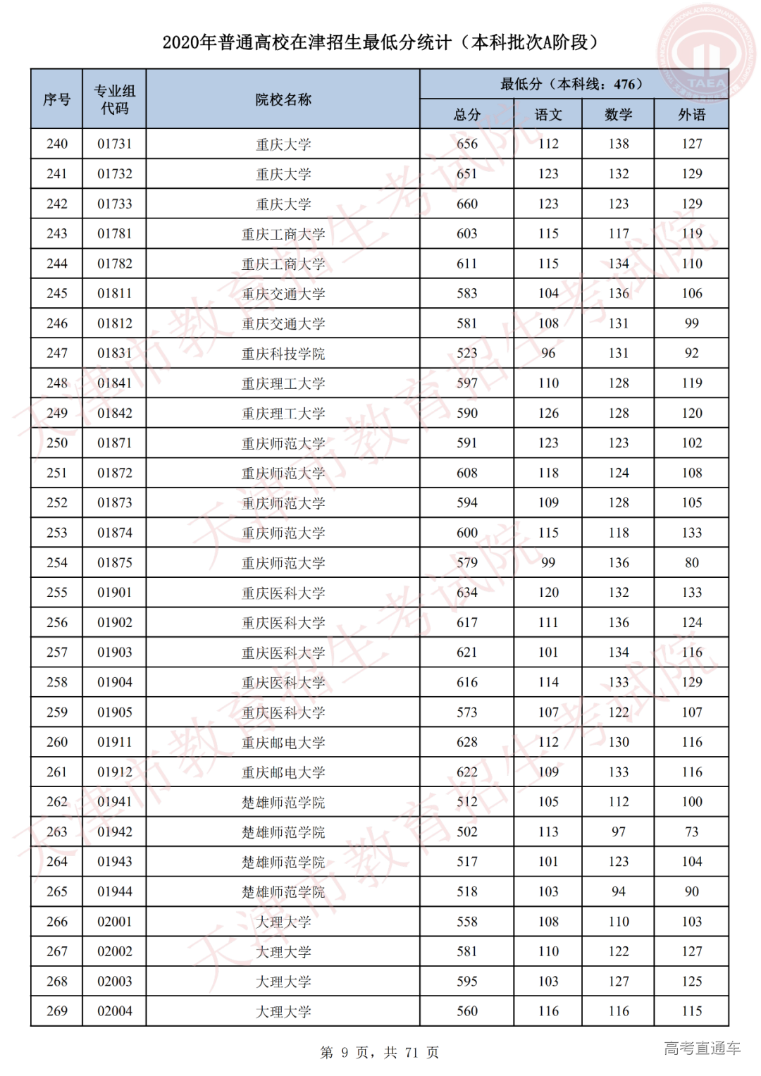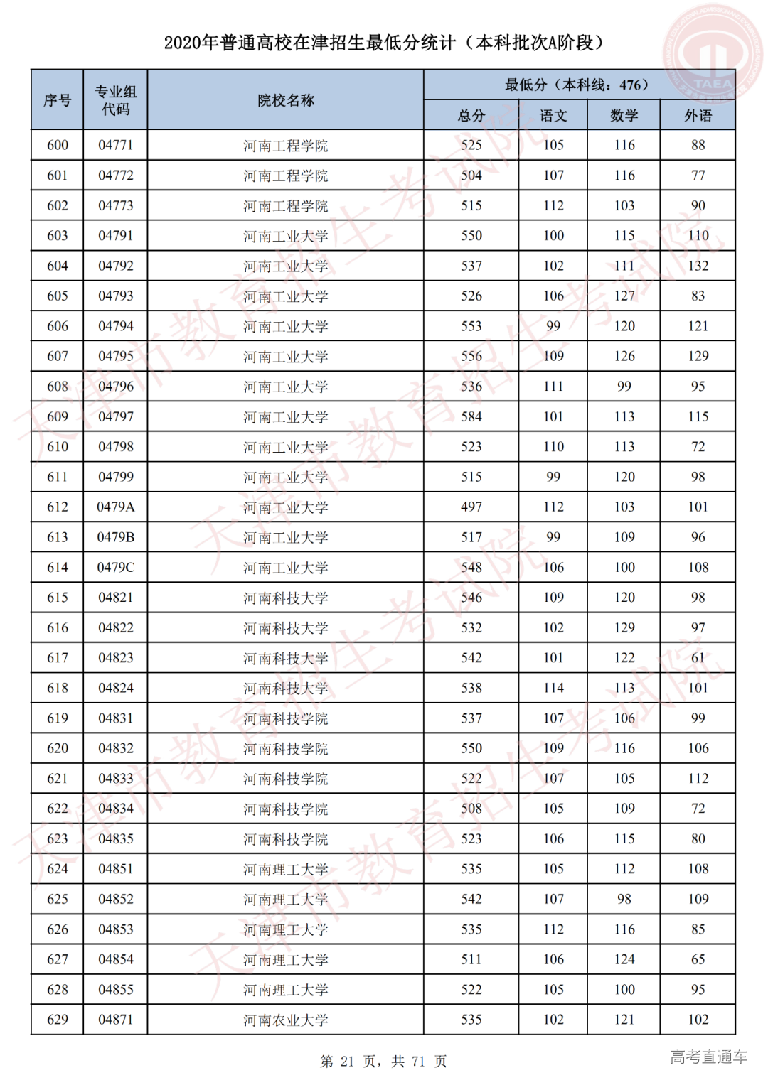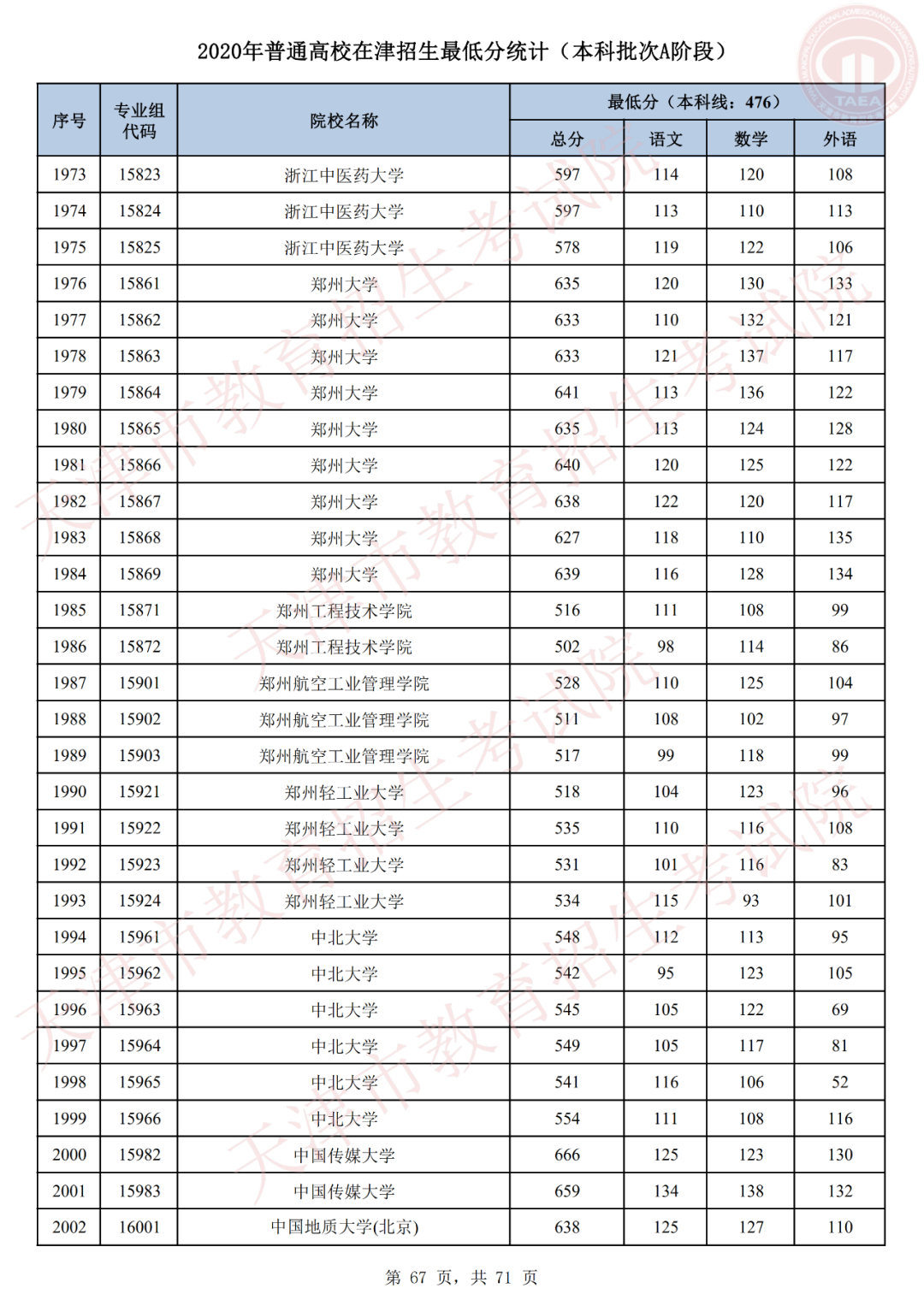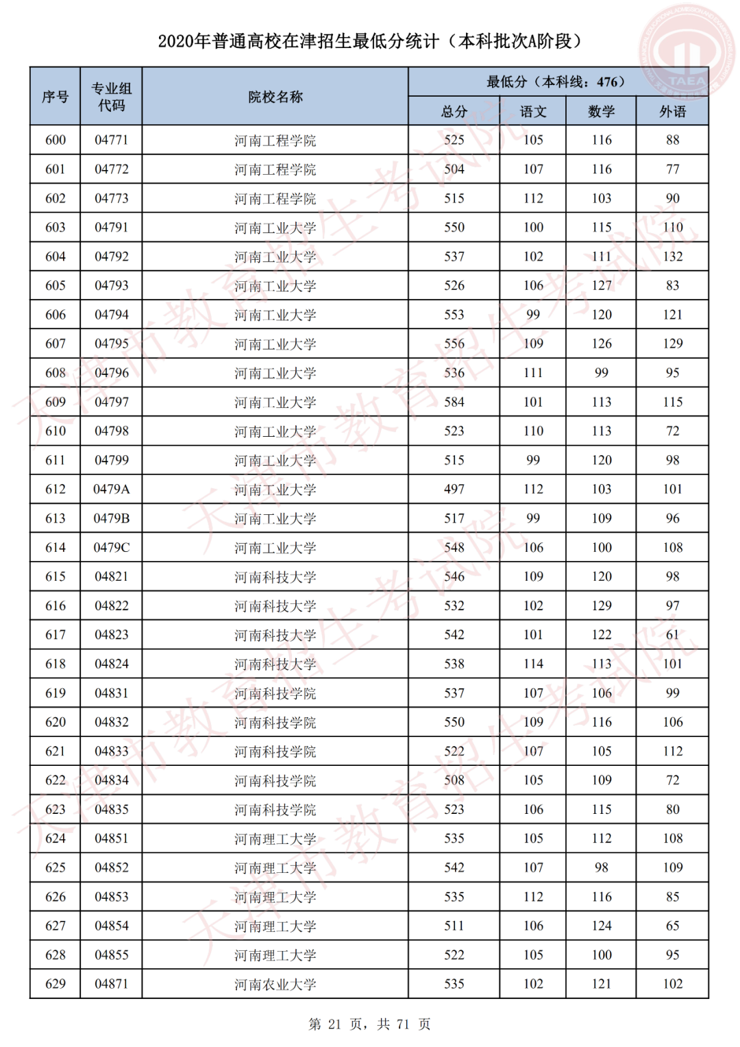 今年是我市新高考改革落地之年,为落实《教育部办公厅关于做好2020年全国普通高校招生录取工作的通知》(教学厅〔2020〕10号)有关要求,避免炒作高分段考生录取情况,积极引导考生树立兴趣选择的良好导向,营造平稳有序的录取环境,自2020年起,我市不再公布普通类本科批次高分段院校专业组具体最低分,今年确定为“695分及以上”的院校专业组不再公布。