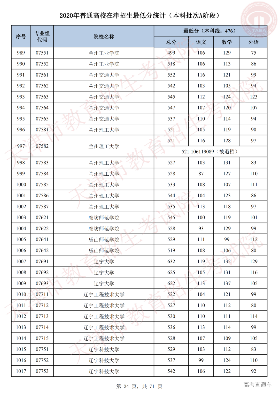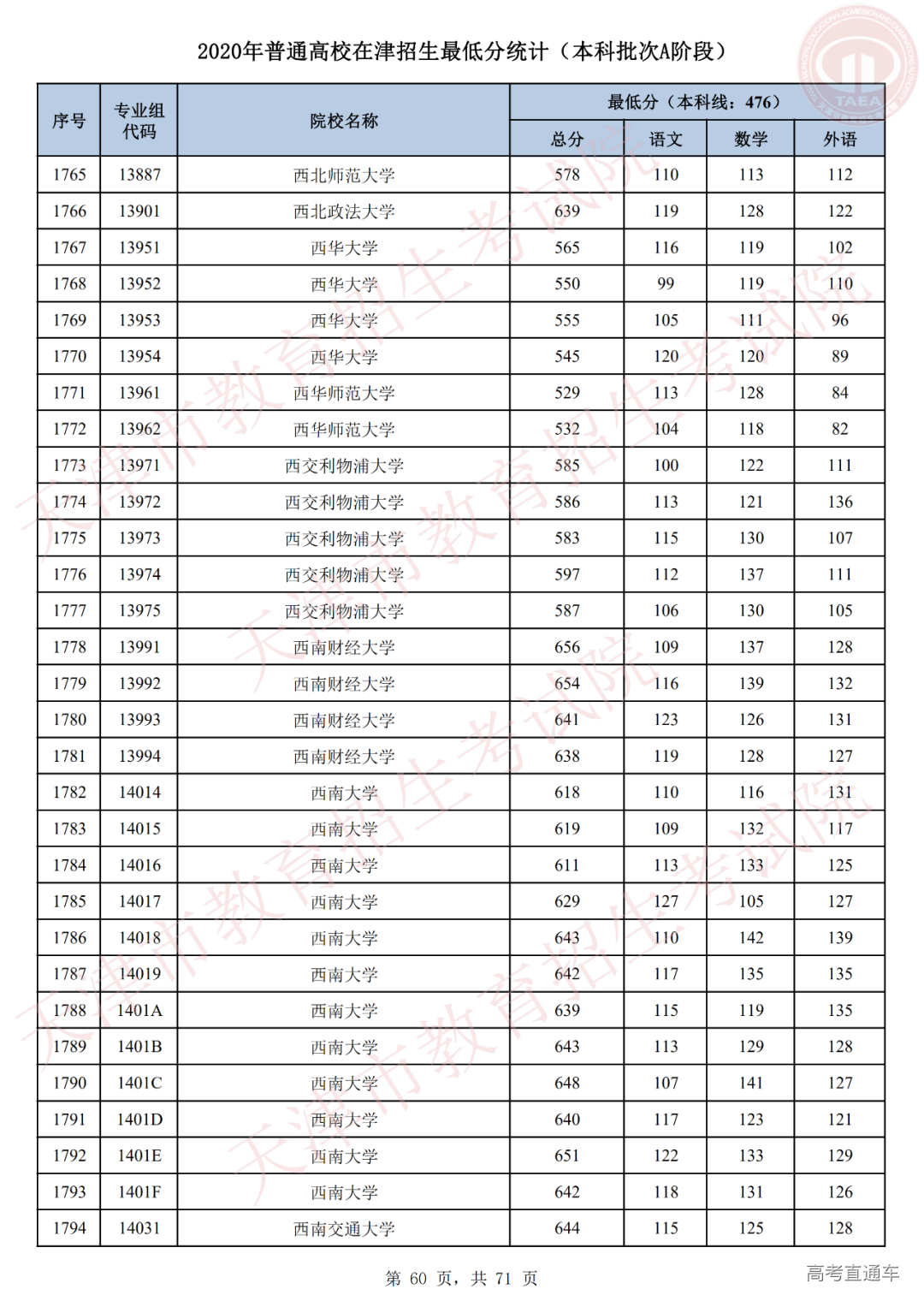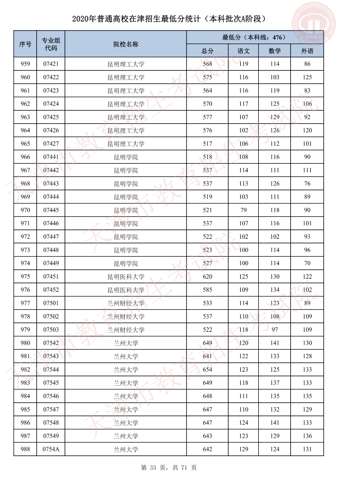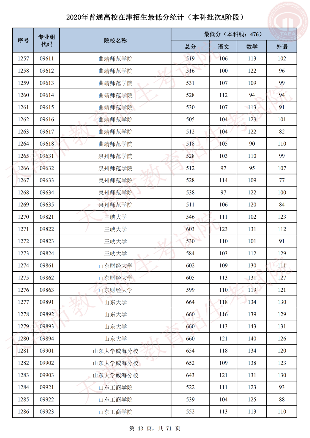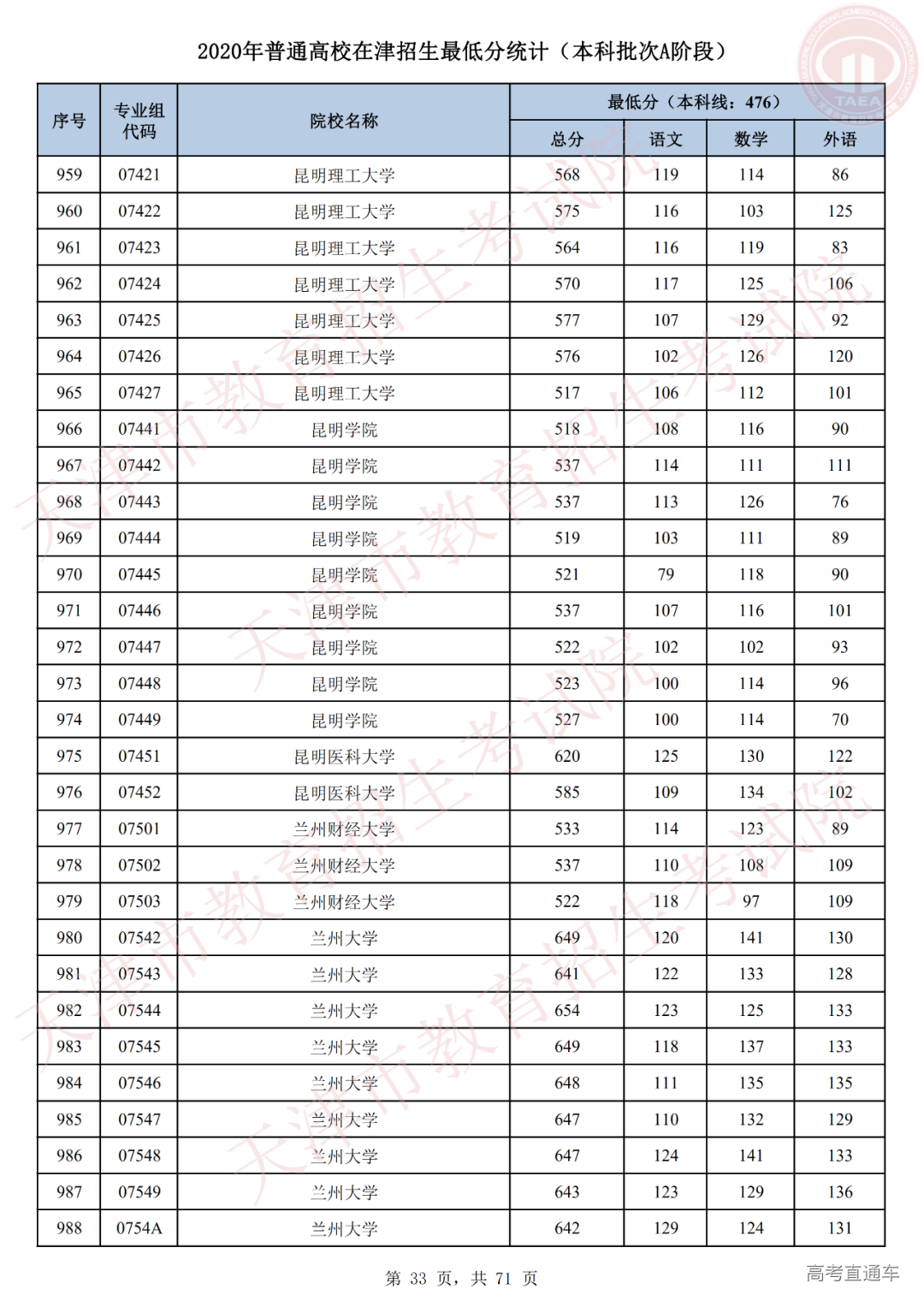 今年是我市新高考改革落地之年,为落实《教育部办公厅关于做好2020年全国普通高校招生录取工作的通知》(教学厅〔2020〕10号)有关要求,避免炒作高分段考生录取情况,积极引导考生树立兴趣选择的良好导向,营造平稳有序的录取环境,自2020年起,我市不再公布普通类本科批次高分段院校专业组具体最低分,今年确定为“695分及以上”的院校专业组不再公布。