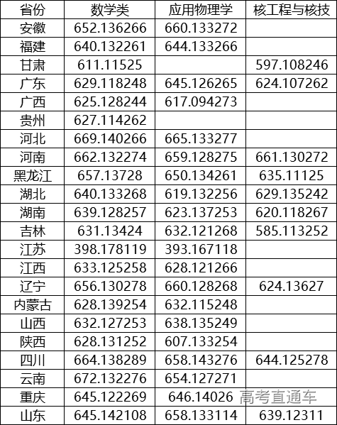 整数部分表示考生高考成绩总分,非整数部分为考生单科成绩,其中小数点后1至3位为考生数学单科成绩,4至6位为考生理科综合单科成绩(江苏省为语文单科成绩),单科成绩如包含小数则四舍五入为整数。