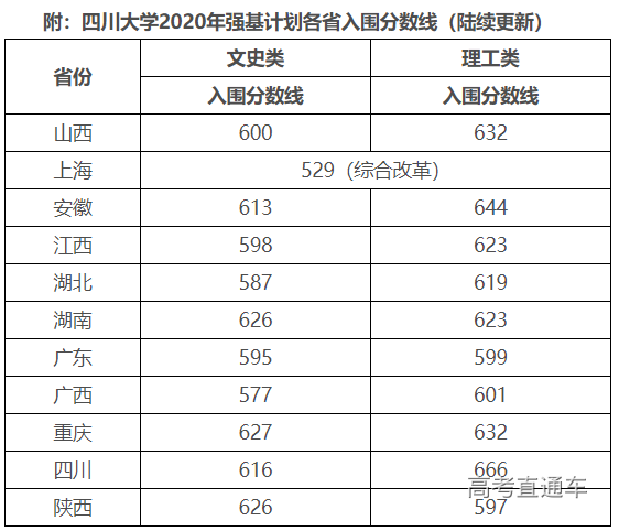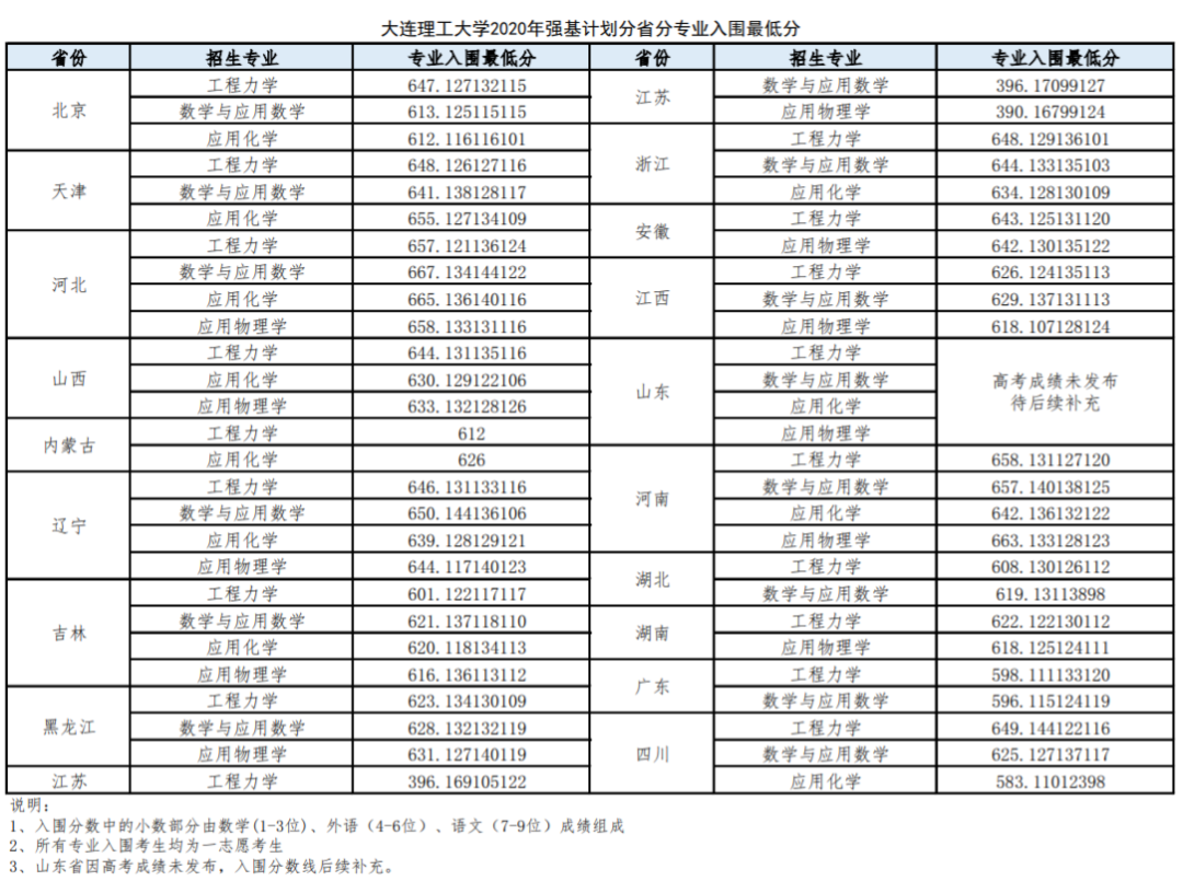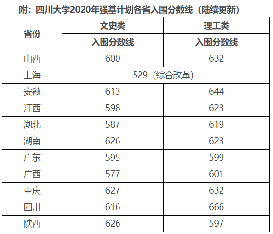 国防科技大学2020年强基计划7个招生省份校考入围分数线公告如下: