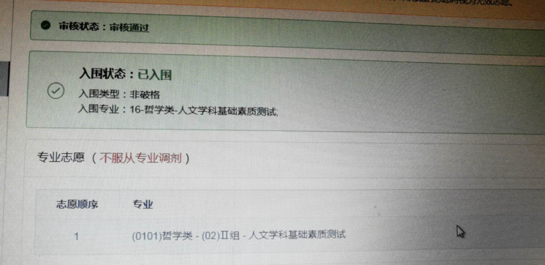 1、考生登录阳光高考强基计划报名系统https://bm.chsi.com.cn/jcxkzs/