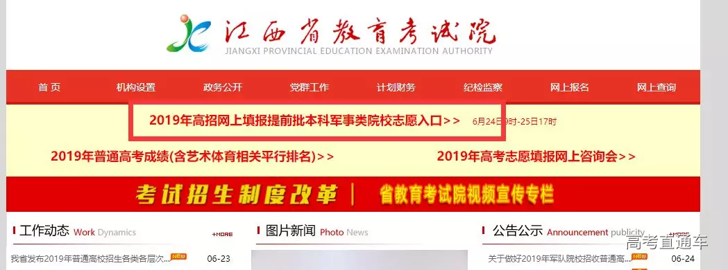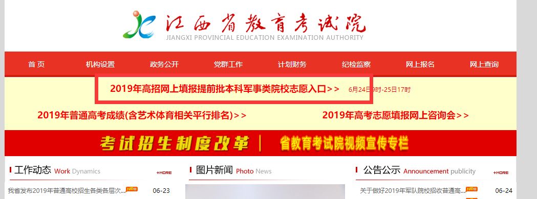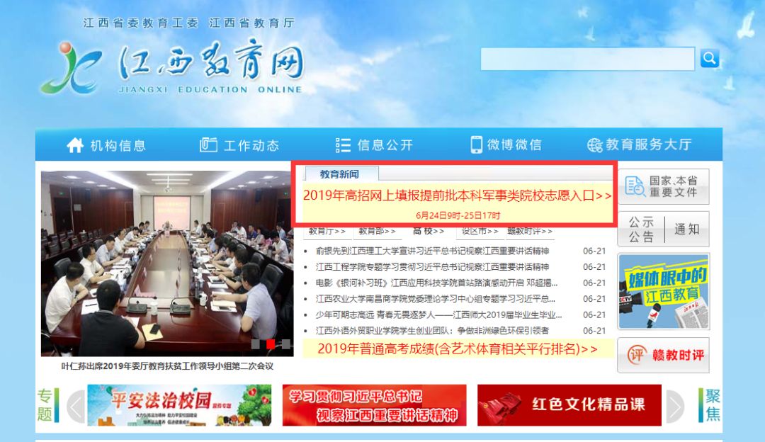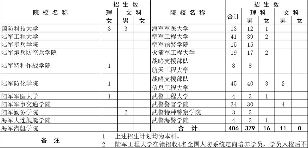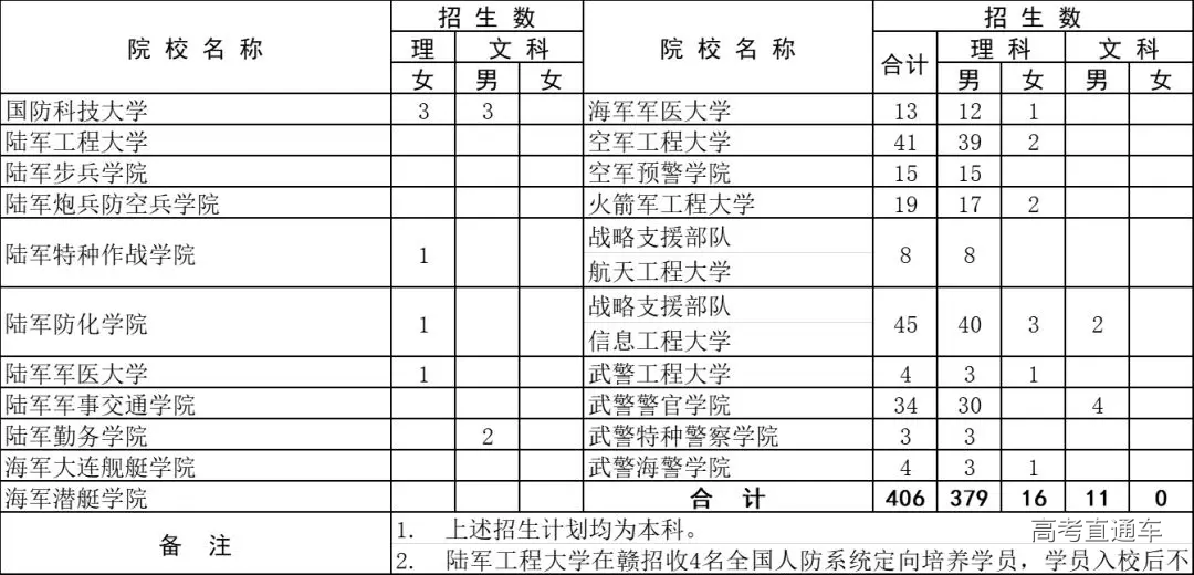有志报考军事类院校的同学们注意啦!6月24日9时至6月25日17时,可以网上填报提前批本科军事类院校志愿! 志愿填报地址为:江西教育网(http://www.jxedu.gov.cn/) 江西省教育考试院网站(http://www.jxeea.cn/) 具体内容,往下看↓↓↓ 2019年军队院校在江西省招收普通高中毕业生计划 江西省2019年普通高校招生