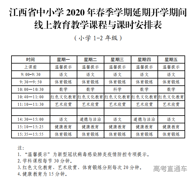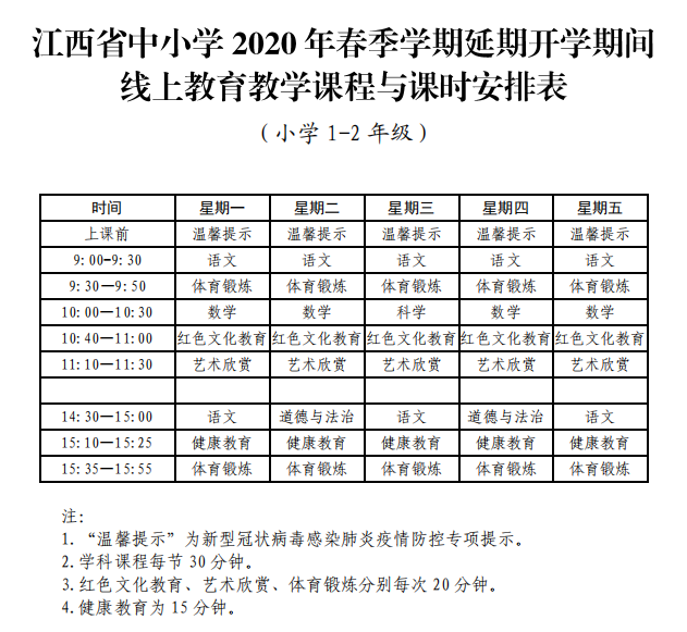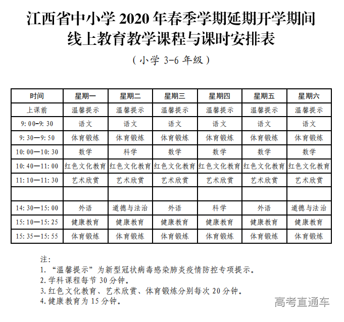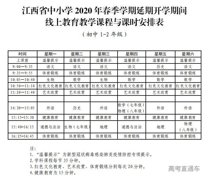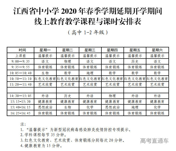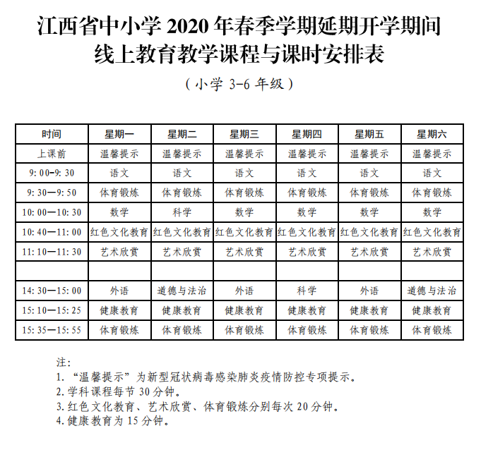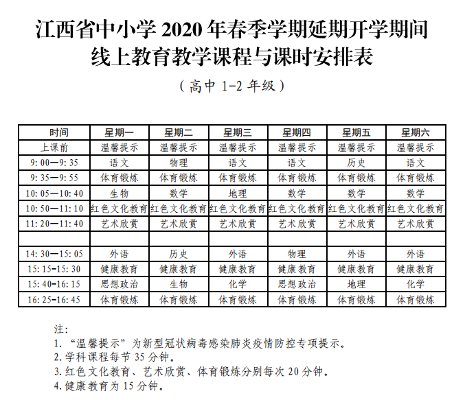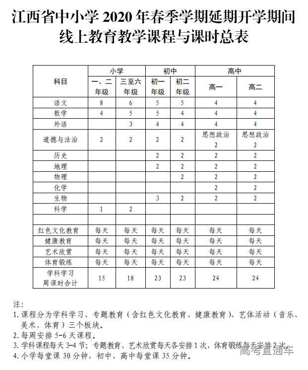 5.初中三年级和高中三年级由各地各校根据实际情况自行组织线上教学,教育厅“赣教云”提供线上教学平台及相关技术支持。