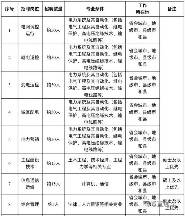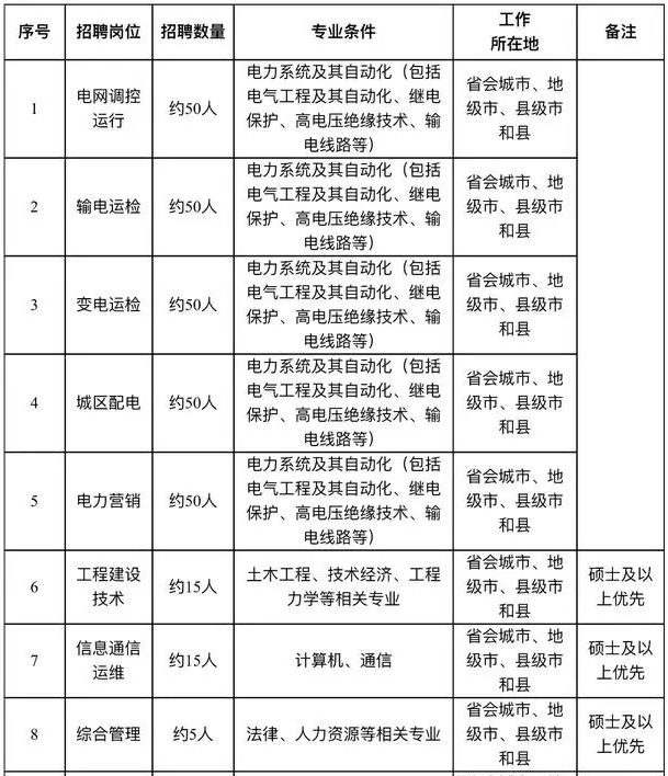 国家电网各下属单位学历要求不一,有的只要求硕士及以上学历,有的则是本科学历及以上学历,有的省电力公司专科及以上学历即可,只不过专科学历的学生工作地域会比较偏远,待遇肯定也有所差别。从招聘需求来看,该公司招聘电工类和电子信息类的专业最多,比如电气工程及其自动化、电气工程、计算机和电子信息方面的专业,这些专业契合电力设备、智能电力等发展方向,每年都是“招聘大户”。
