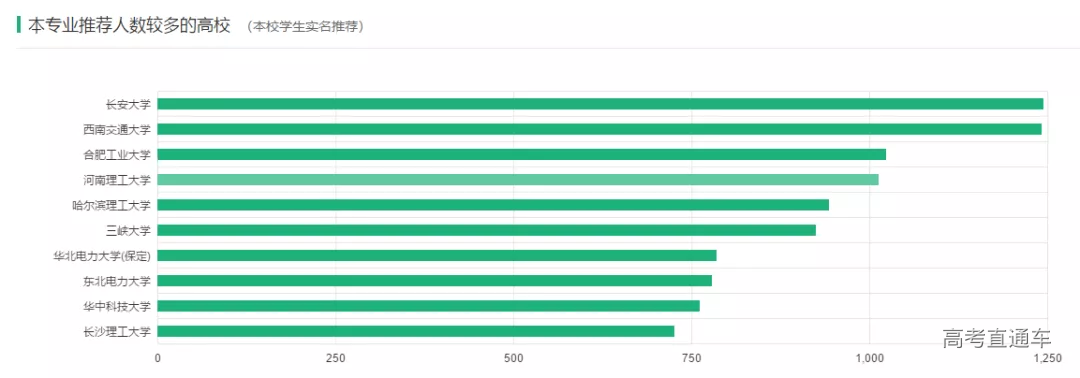 专业推荐人数最多的前五所高校分别是:长安大学、西南交通大学、合肥工业大学、河南理工大学、哈尔滨理工大学。